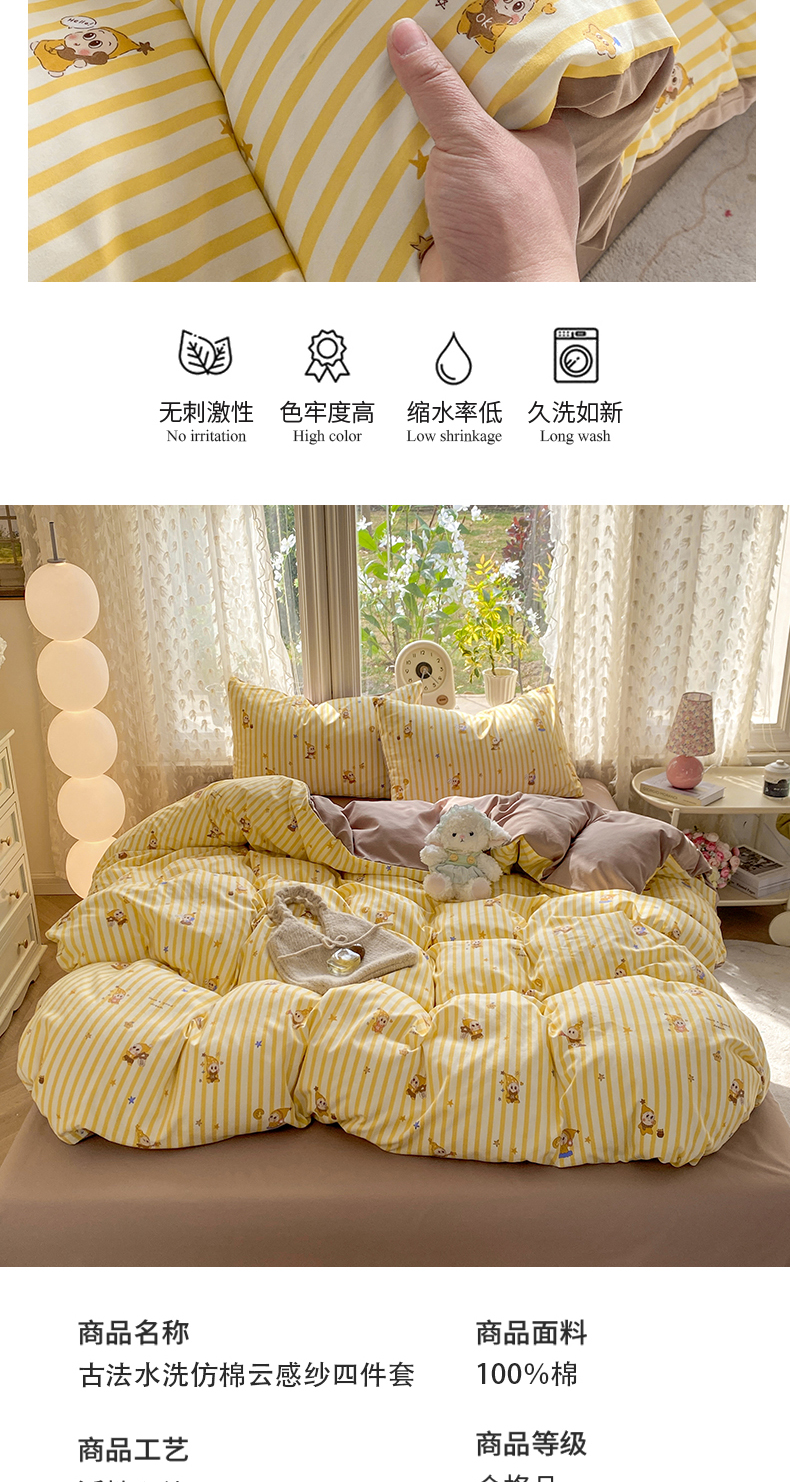 (总)豫见家纺 2026新款古法水洗仿棉云感纱四件套,小鱼心事,爱心格纹,安妮碎花,豹纹咖,彩波波,彩心心,草莓点点,晨露,初夏,梵高映像,乖巧KT-粉,乖巧KT-蓝,赫莲娜,灰条樱桃,吉米兔-灰,吉米兔-紫,浆果,兰枝玉树,梦屿,秘密花园,蜜恋樱桃,木马乐园,南瓜派,千野合,甜心乐园,晚安小星星,夏日初恋,小黄花,小猫钓鱼,小幸福,樱川桃井,知秋