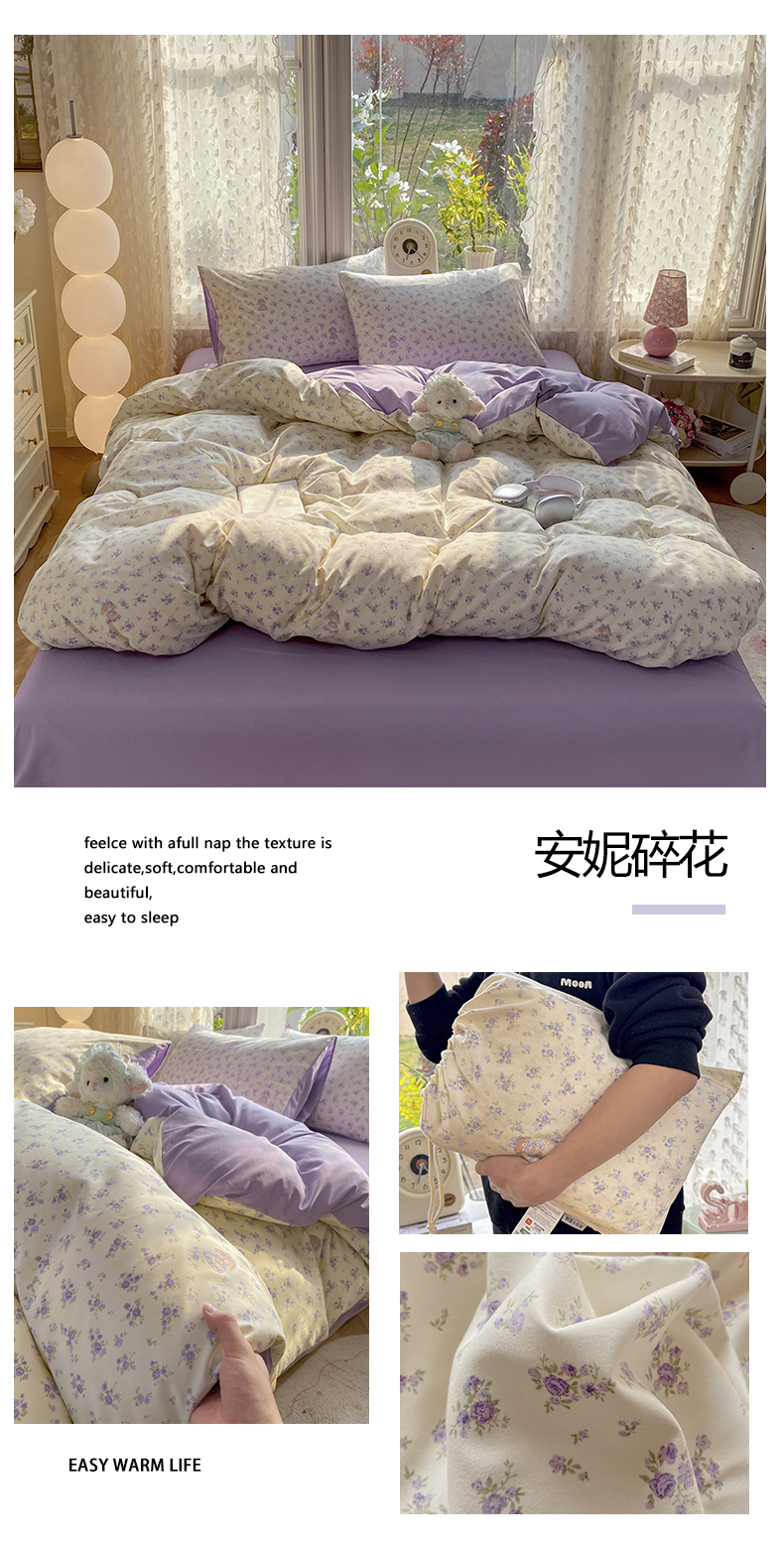 (总)豫见家纺 2026新款A类仿棉云感纱花边四件套,浪漫花叙,梦境之间,芊芊花海,碎花眠语,暗香,草莓多多,春风里,梵高印象,粉豹纹,狗狗家族,蝴蝶梦,琥珀流光,花漫漫,花影如梦,浪漫蔷薇,栗色木马纹,木马乐园,年华,日光漫游,赛琳娜,山茶左岸,线条表情狗,小鱼心事,雨沫蝴蝶结,紫色花野,紫藤花开