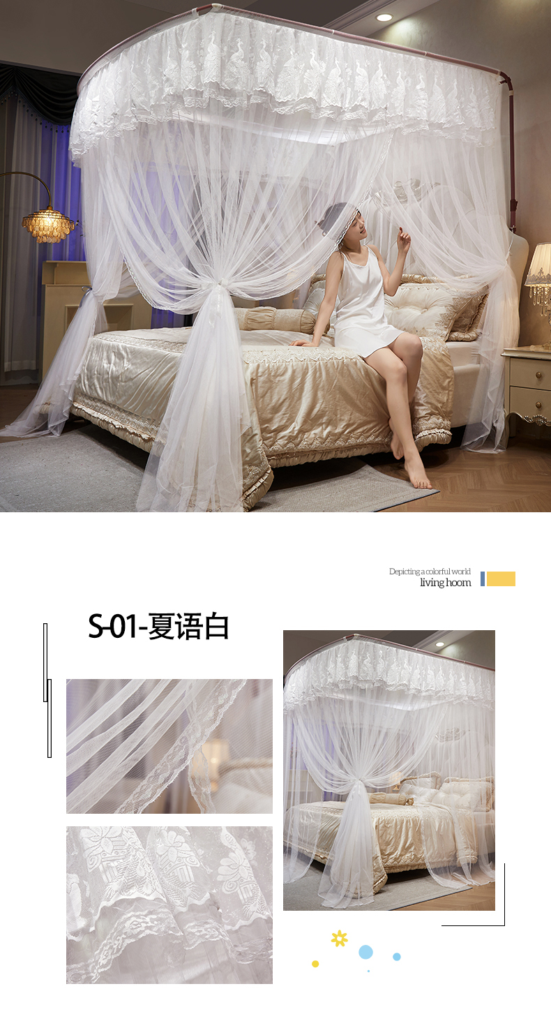 (总)舞夜盛世 2026新款u型拉幕导轨蚊帐轨道蚊帐落地宫廷蚊帐—春暖花开,春暖花开-粉色,春暖花开-黄色,春暖花开-水绿,春暖花开-玉色,春暖花开-紫色