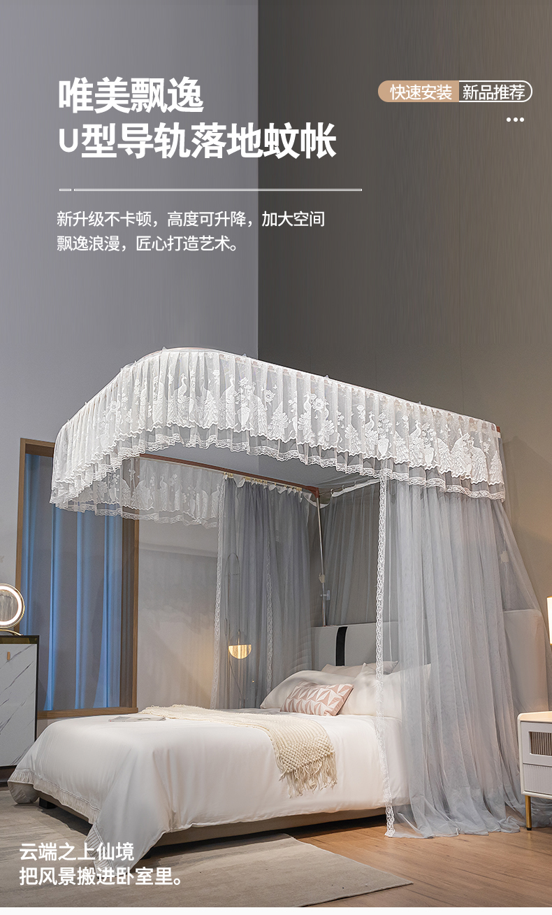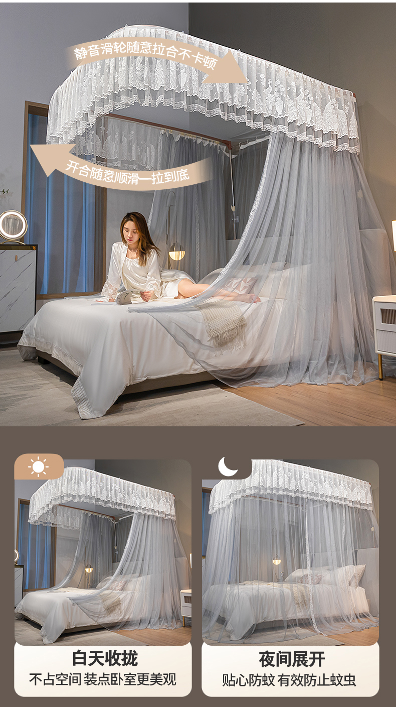 (总)舞夜盛世 2026新款U型导轨落地宫廷蚊帐-花好月圆,花好月圆-黄色,花好月圆-灰色,花好月圆-玉色,花好月圆-紫色
