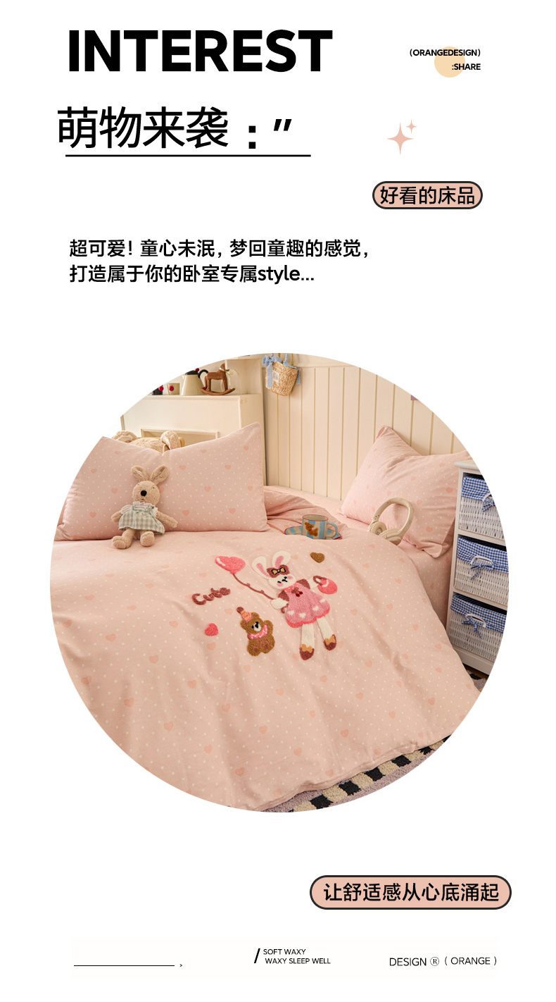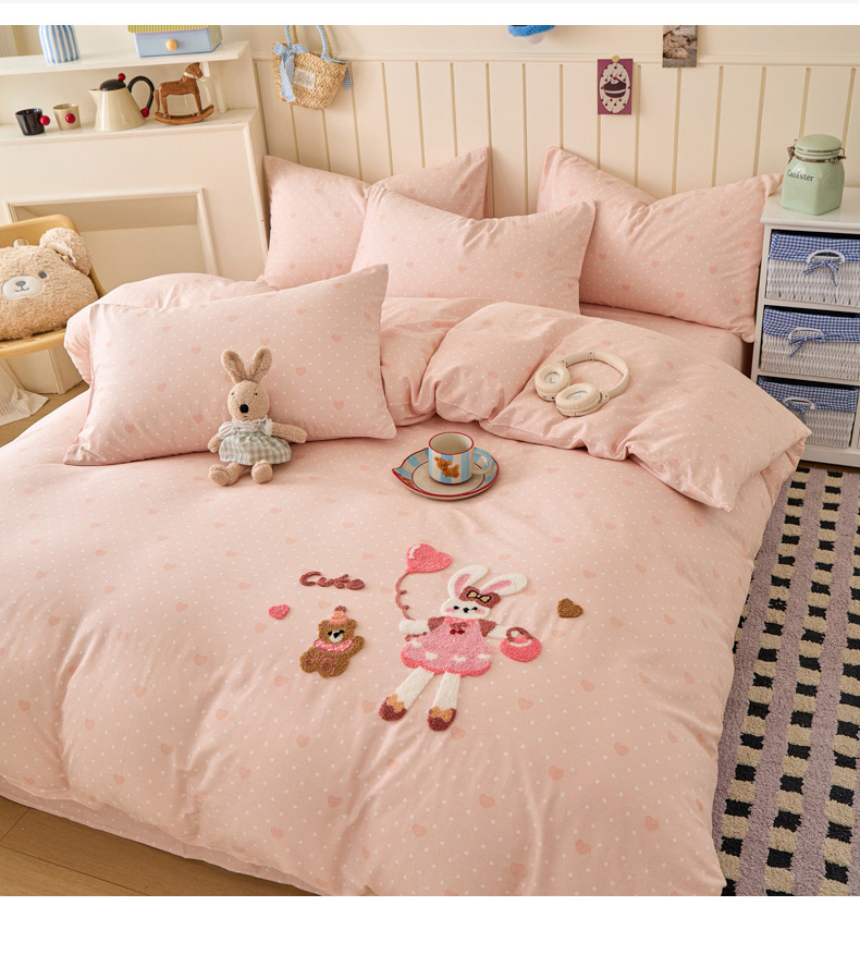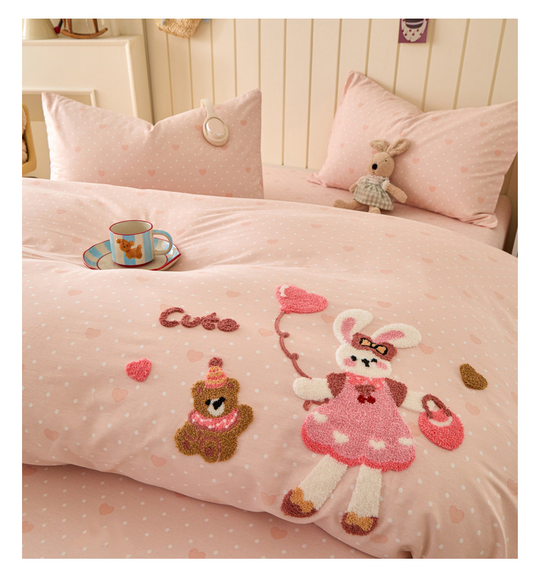 商品名称:倾慕家纺 2026新款全棉卡通毛巾绣系列四件套 兔兔熊