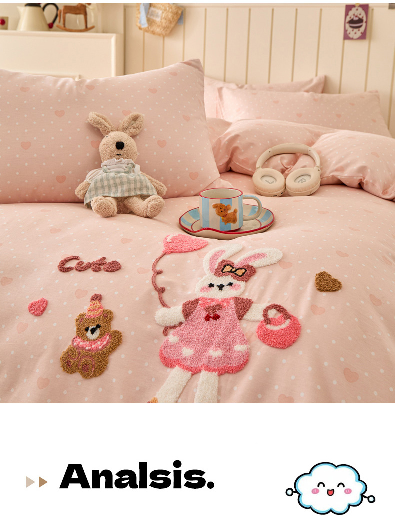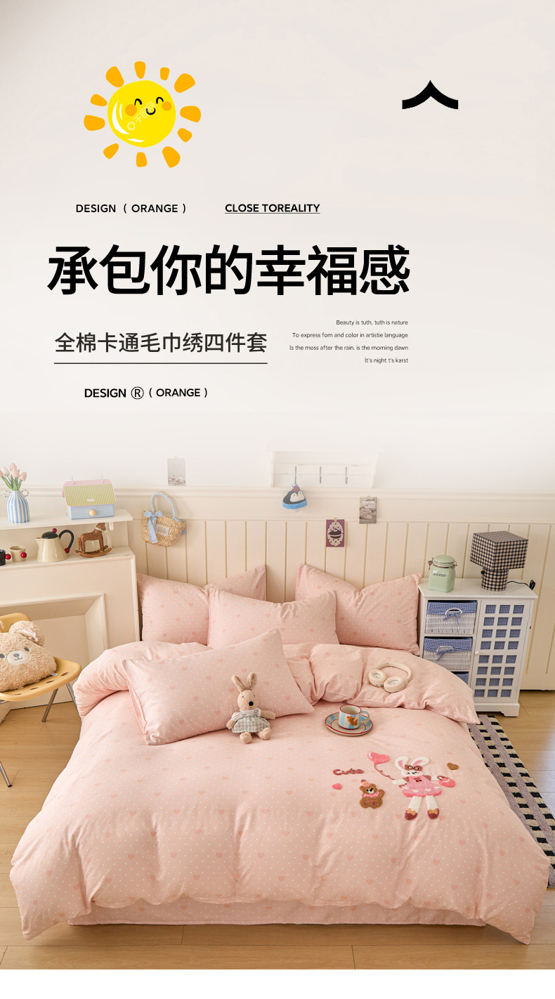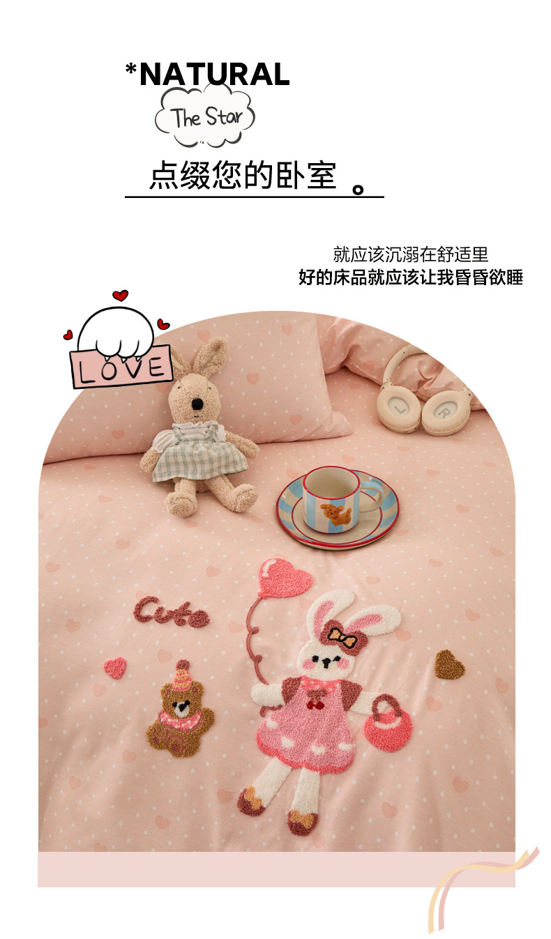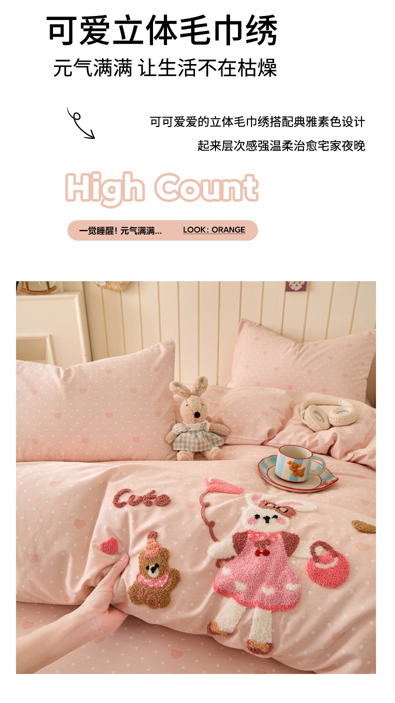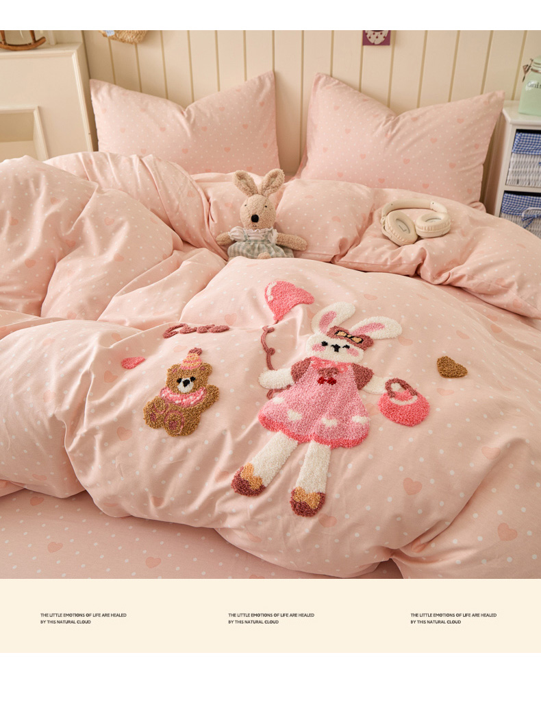 倾慕家纺 2026新款全棉卡通毛巾绣系列四件套 兔兔熊