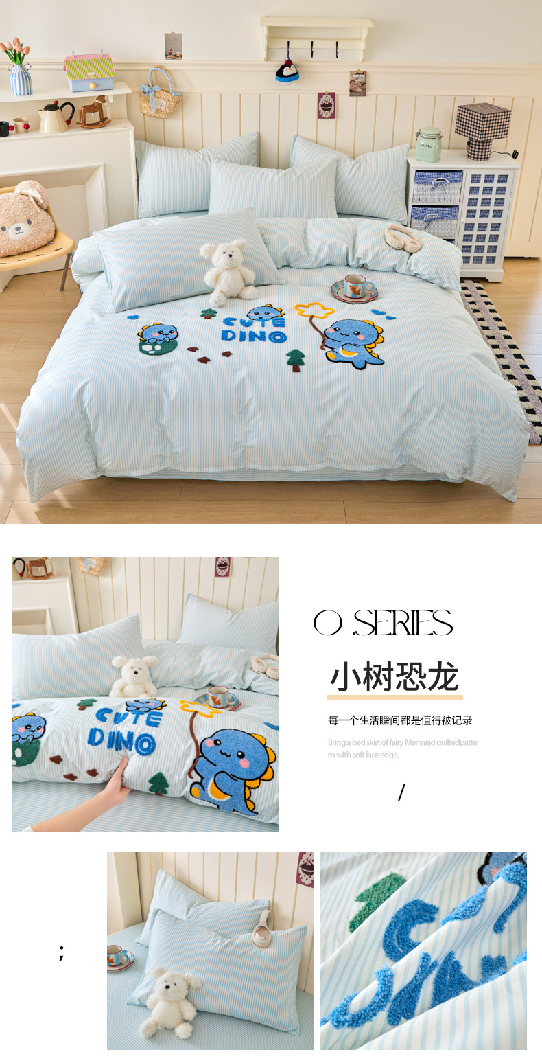 (总)倾慕家纺 2026新款全棉卡通毛巾绣系列四件套,彩虹马,格子小狗,欢乐企鹅,森林小熊,兔兔熊,小树恐龙,小兔女孩