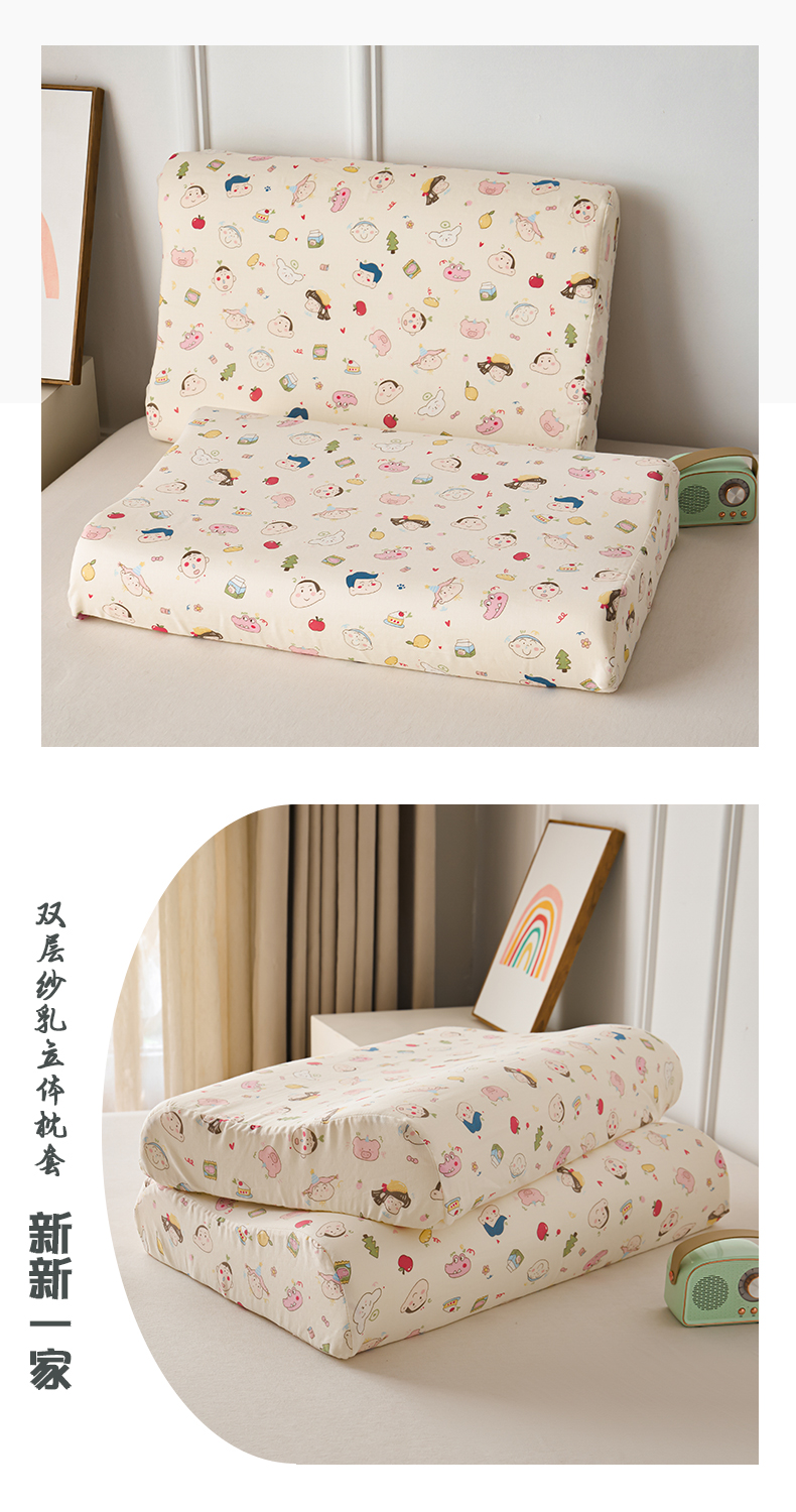 (总)百寐 2026新款全棉A类双层纱立体乳胶枕套纯棉纱布卡通碎花小清新枕套,立体--新新一家,立体-草莓女孩,立体-红格猫咪,立体-开心酷儿,立体-梨梦初醒,立体-领结熊,立体-太空旅行,立体-小城故事,立体-小泡芙,立体-星星人,立体-樱桃狗,立体-樱桃熊