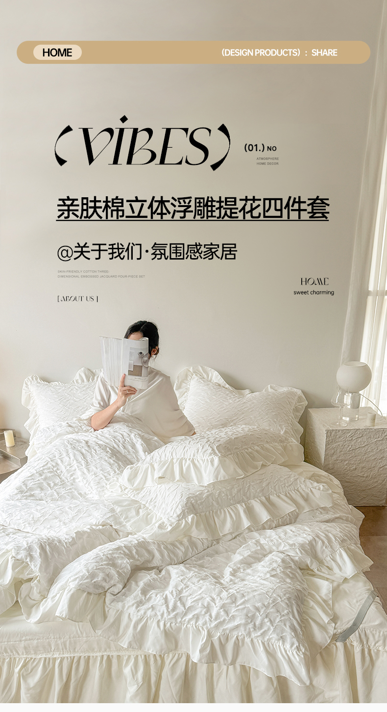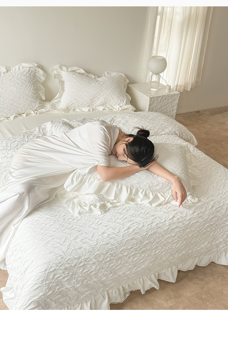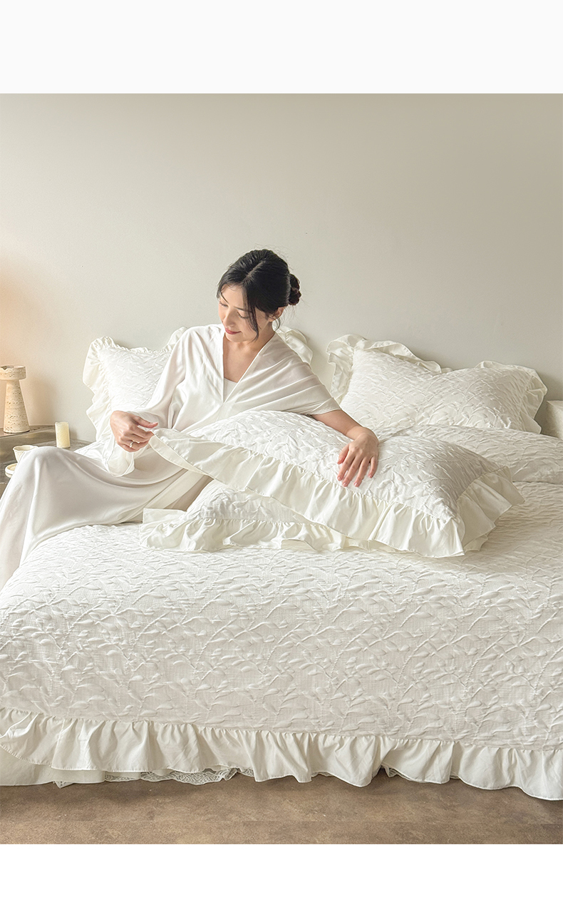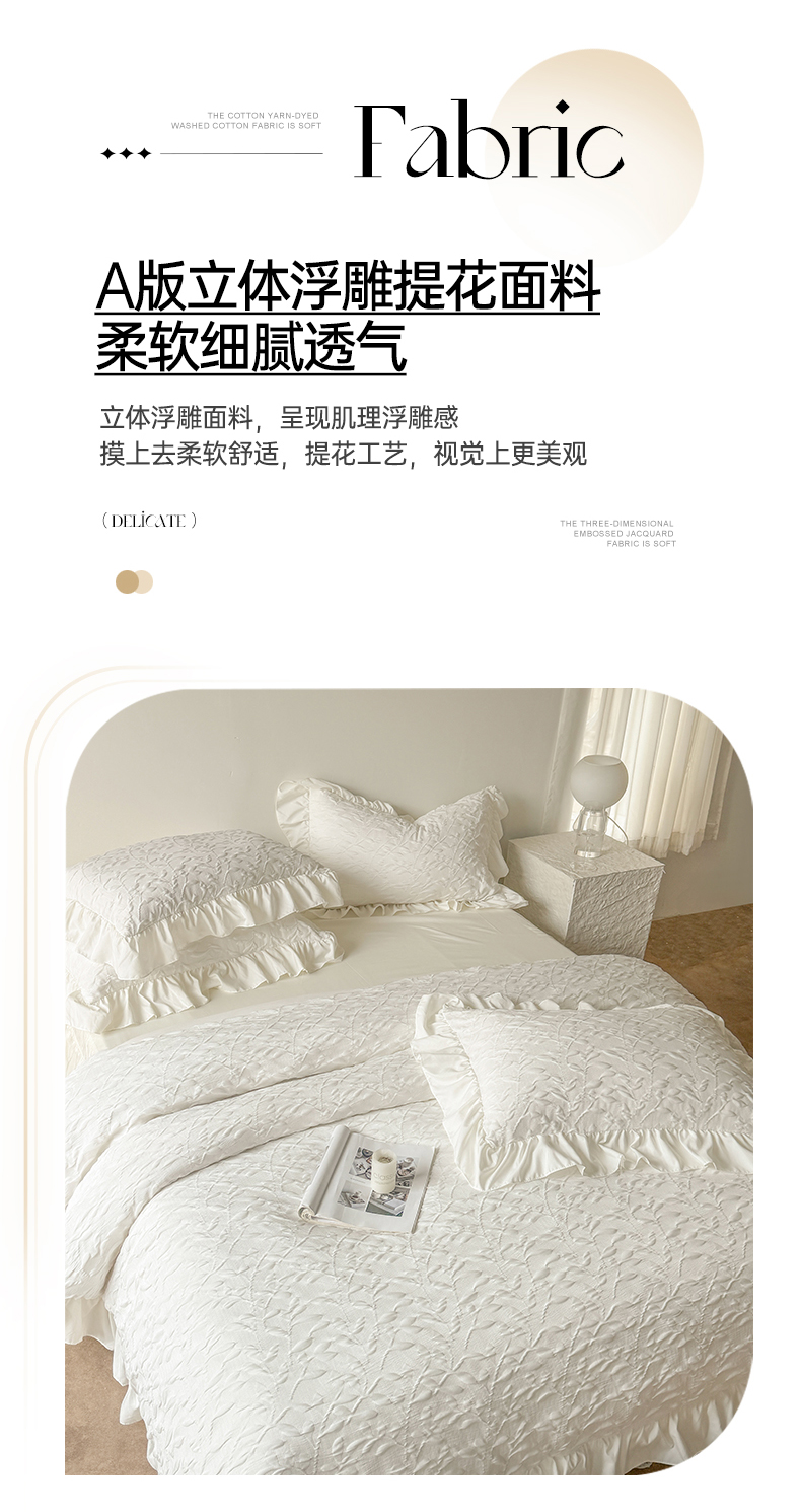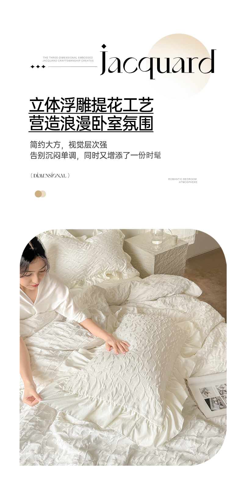 当前位置: 91家纺网 > 商品网购 > 床品套件 > 四件套 > 提花四件套 > 豪美鑫 2026新款立体浮雕提花四件套 叶语系列 叶语-白色