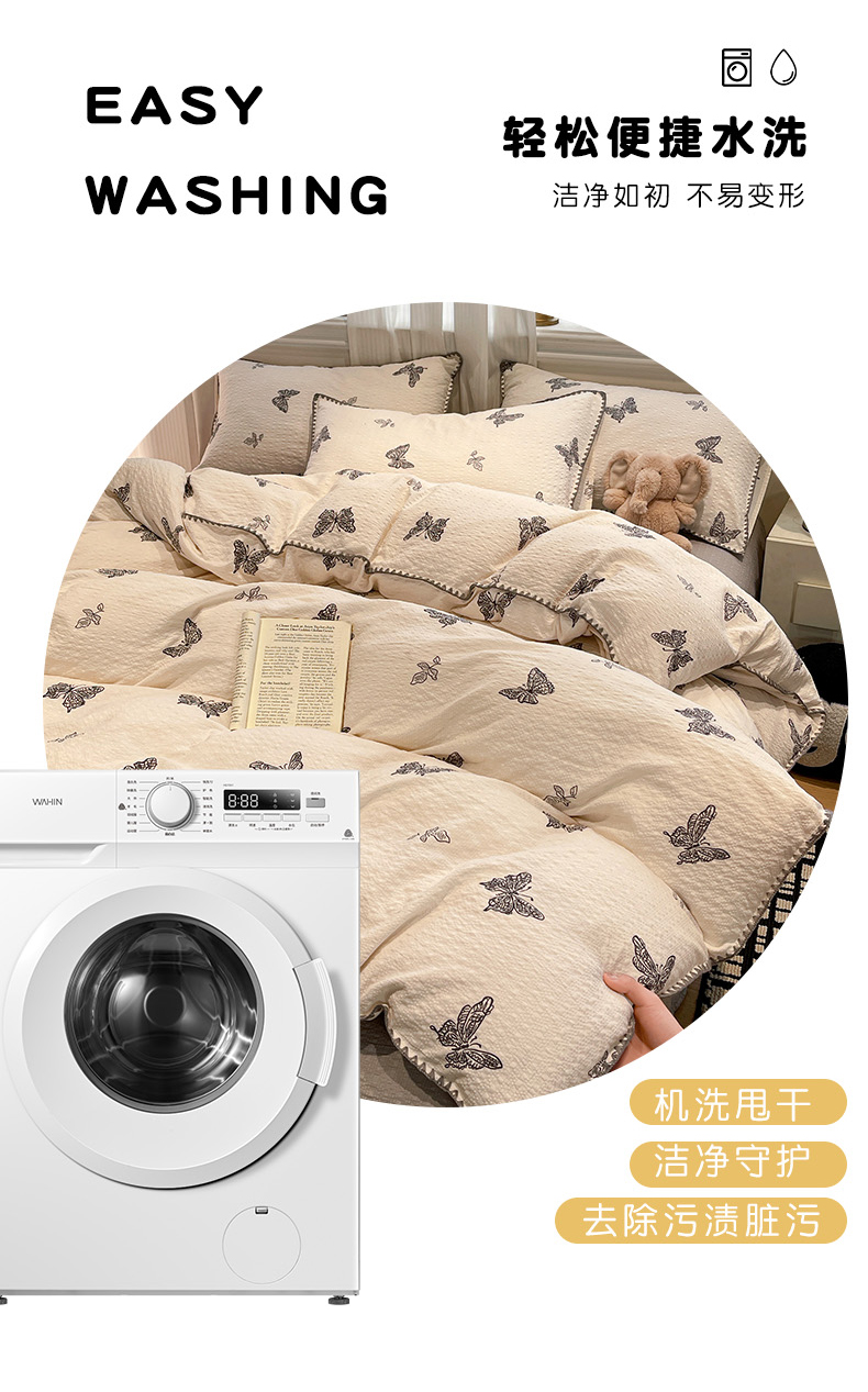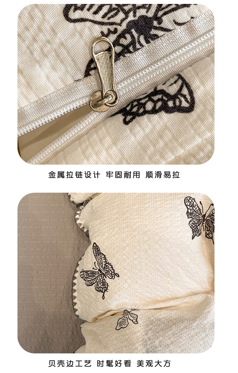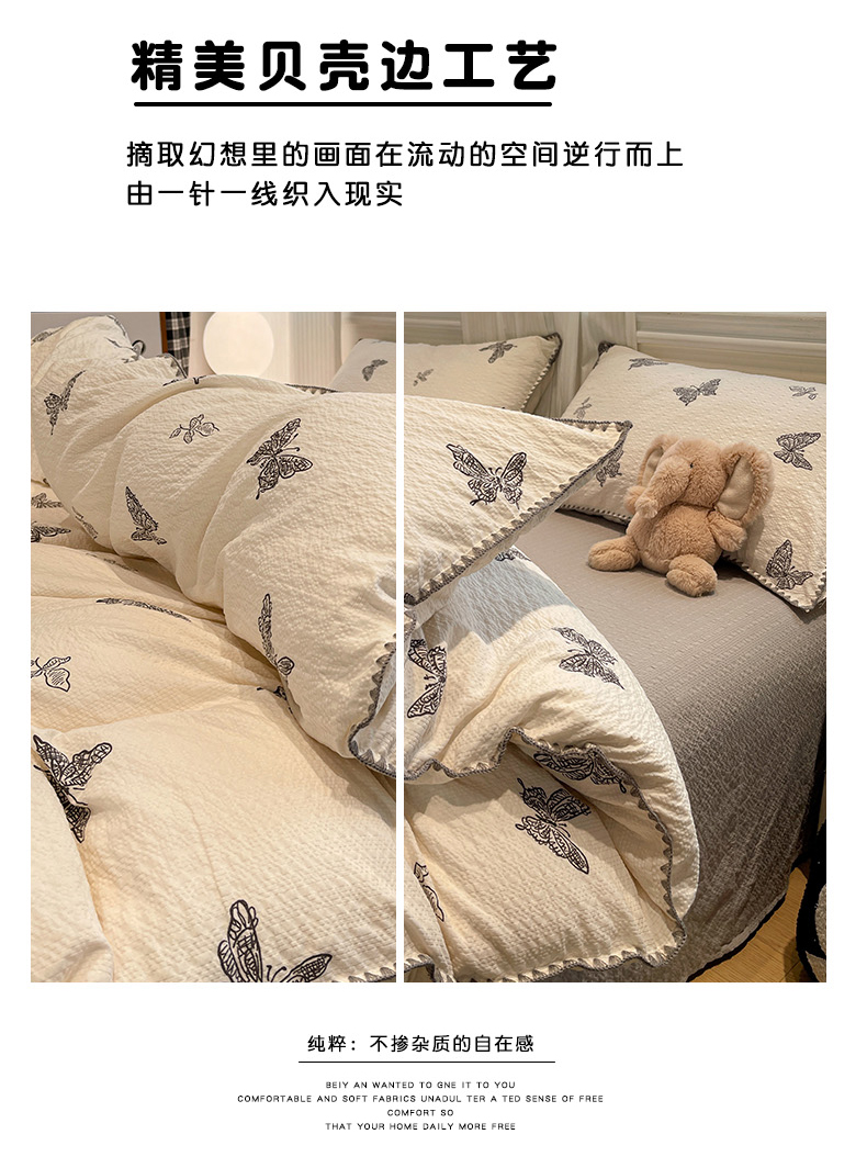 商品名称:仟网汇 2026新款云感泡芙棉小清新印花贝壳边四件套 黑白蝴蝶