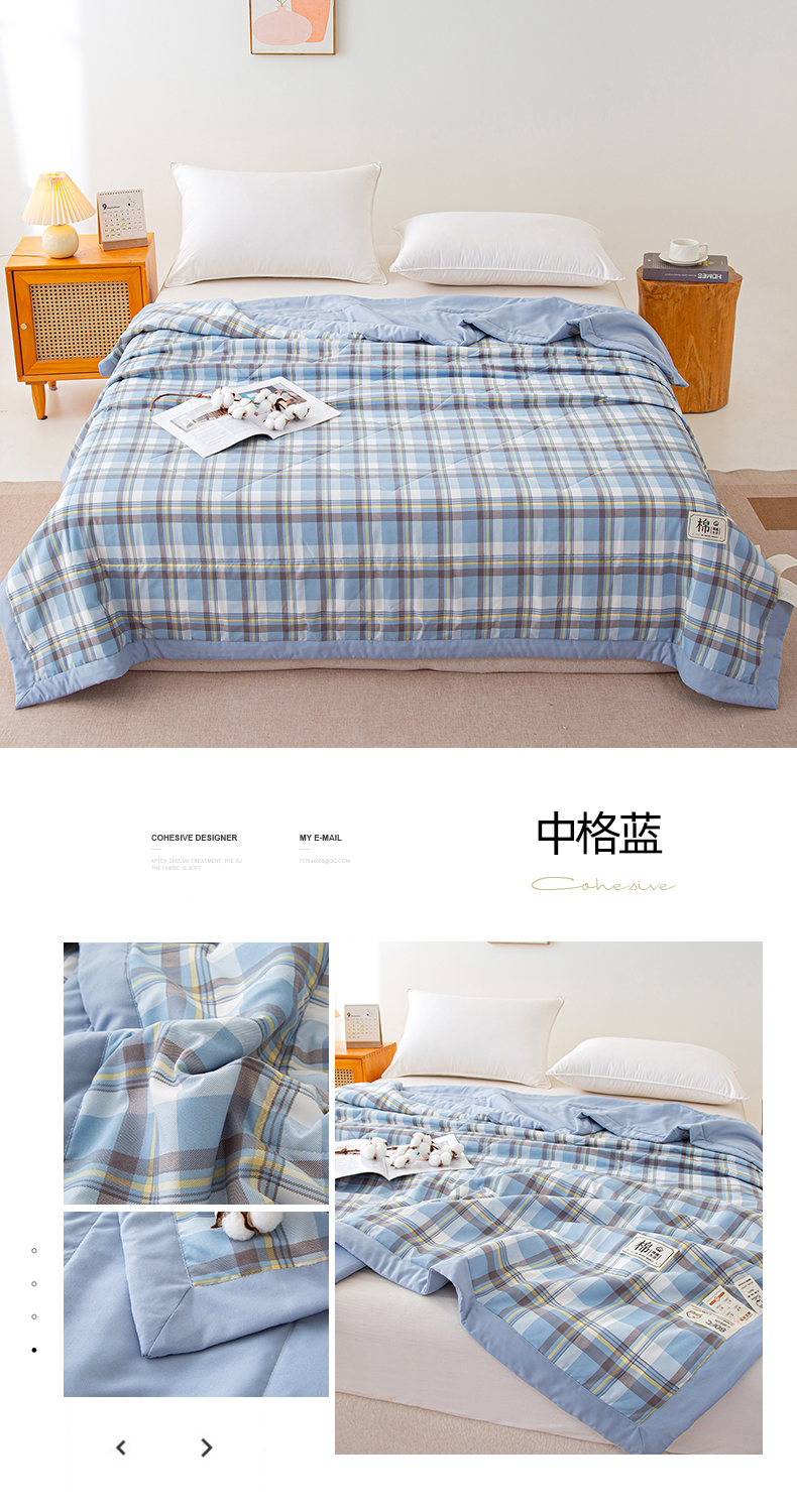 商品名称:美之润家纺 2026新款A类无印风100%新疆棉花夏被纯棉夏凉被空调被子薄被芯棉花 中格蓝