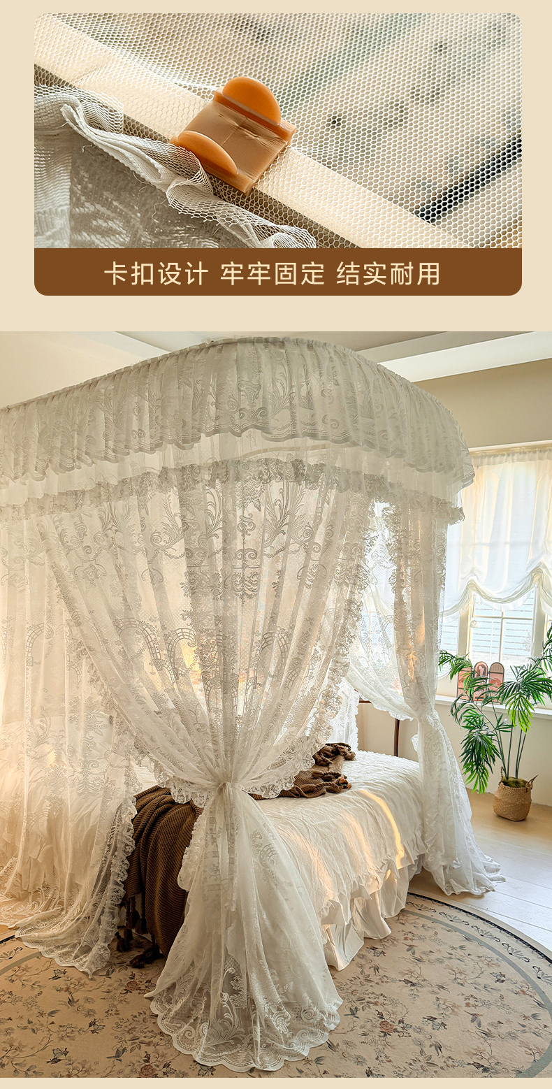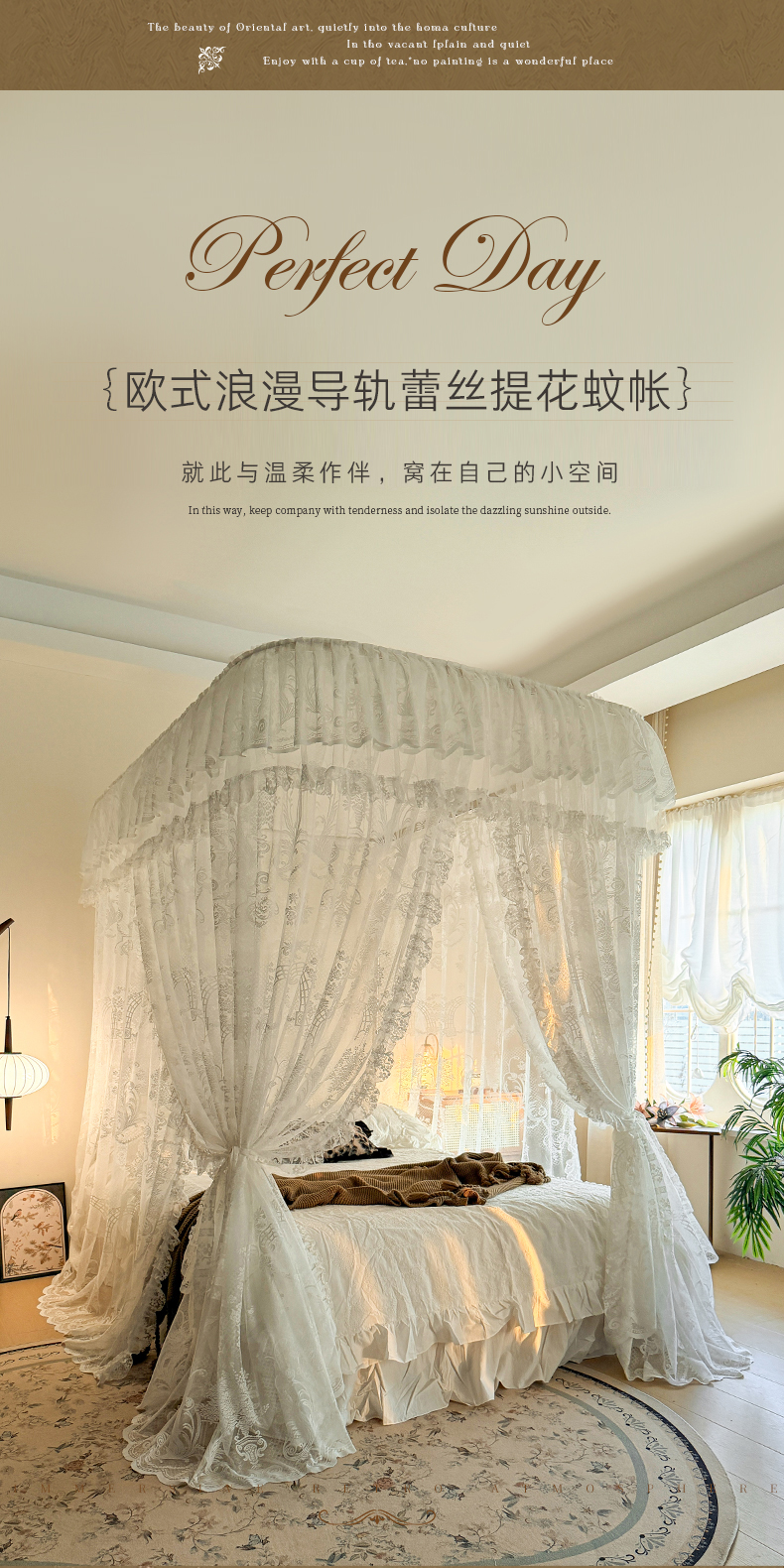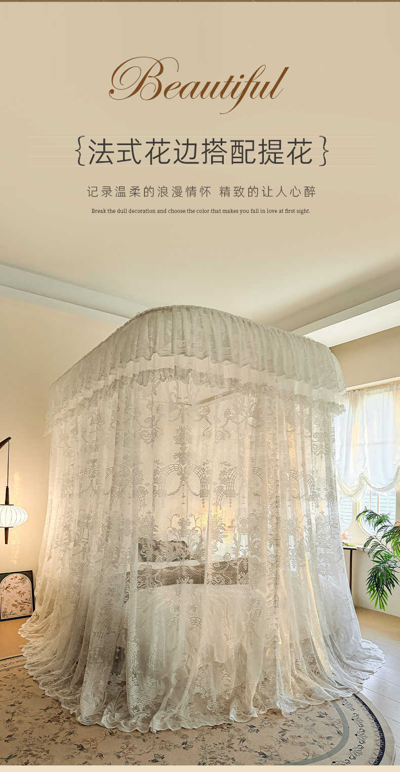 商品名称:都市缘蚊帐 2026新款浪漫303新款欧式蕾丝轨道蚊帐 芬德拉-奶油白