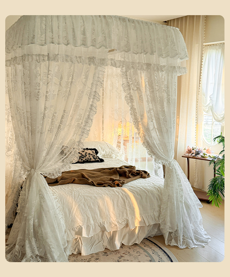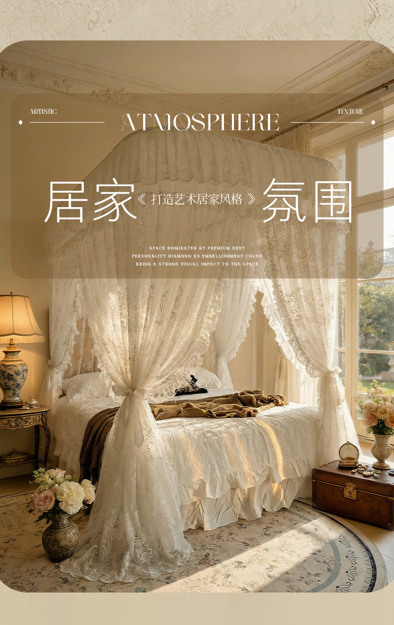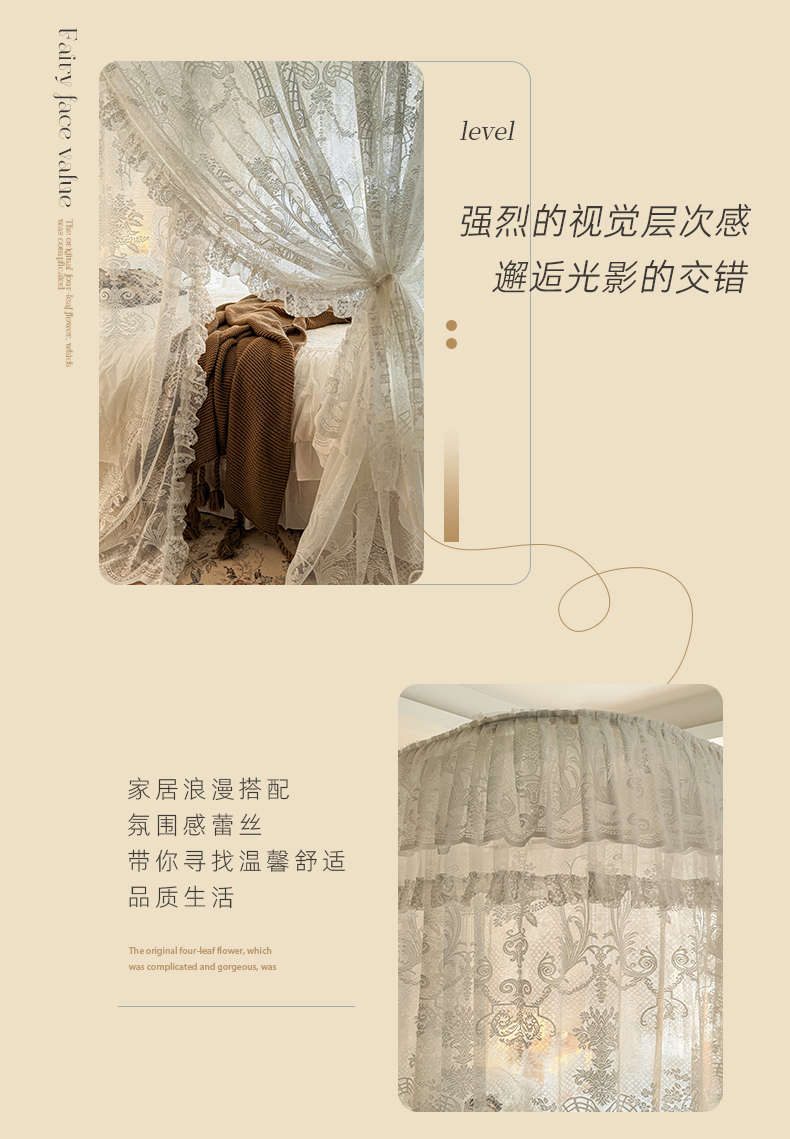 商品名称:都市缘蚊帐 2026新款浪漫303新款欧式蕾丝轨道蚊帐 芬德拉-奶油白
