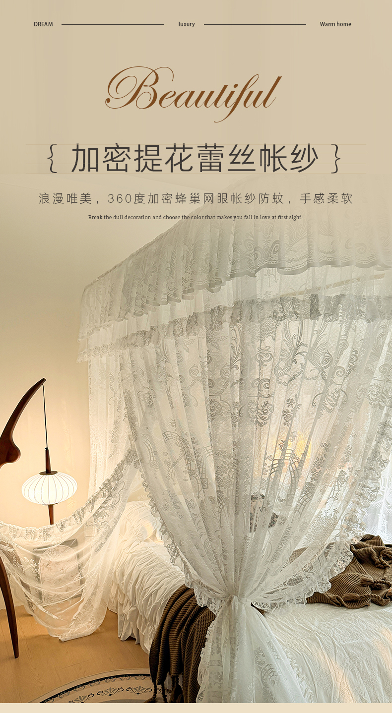 (总)都市缘蚊帐 2026新款春夏落地豪华高端蕾丝提花款导轨蚊帐-玫瑰庄园-905款,905玫瑰庄园-奶油白,905玫瑰庄园-奶油杏,905玫瑰庄园-奶油玉