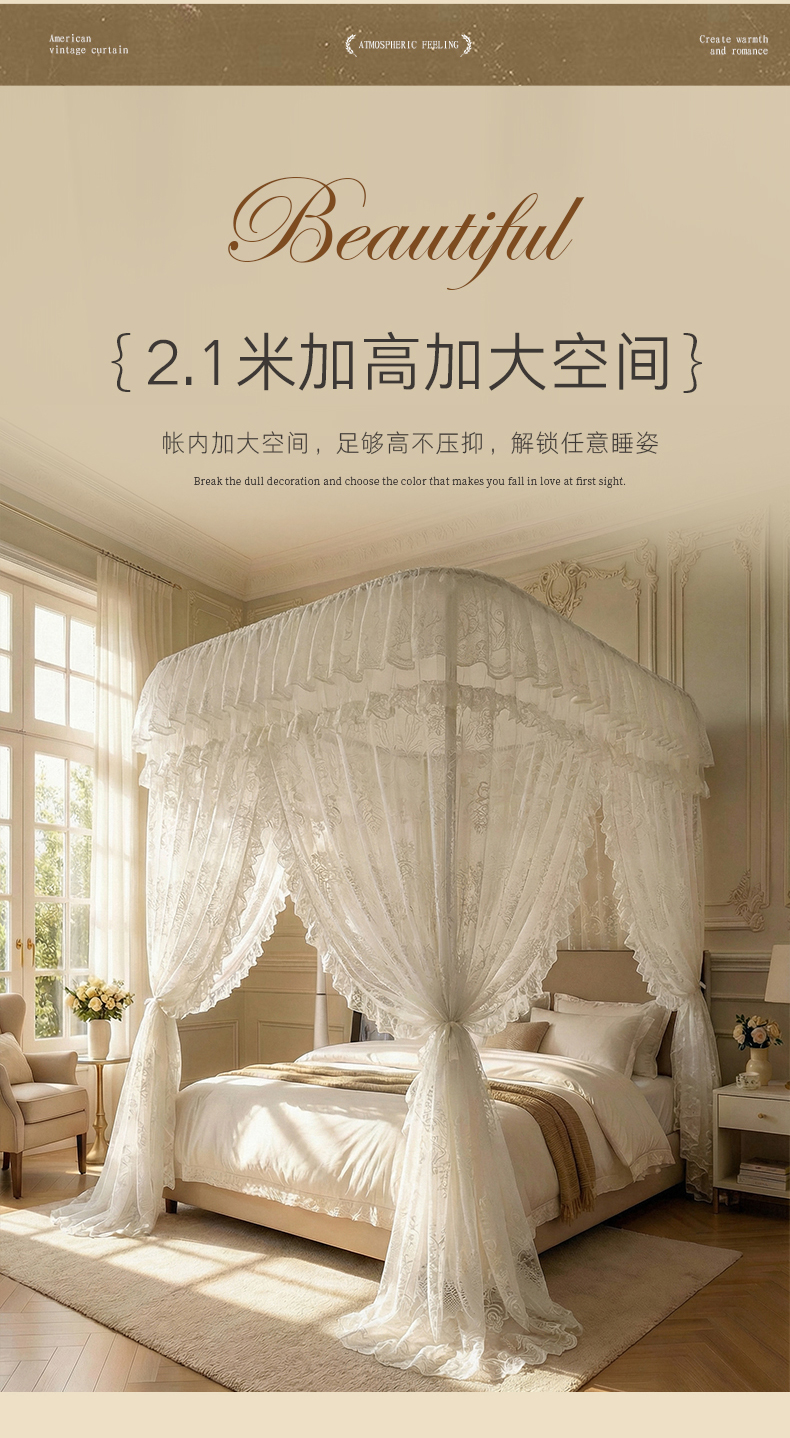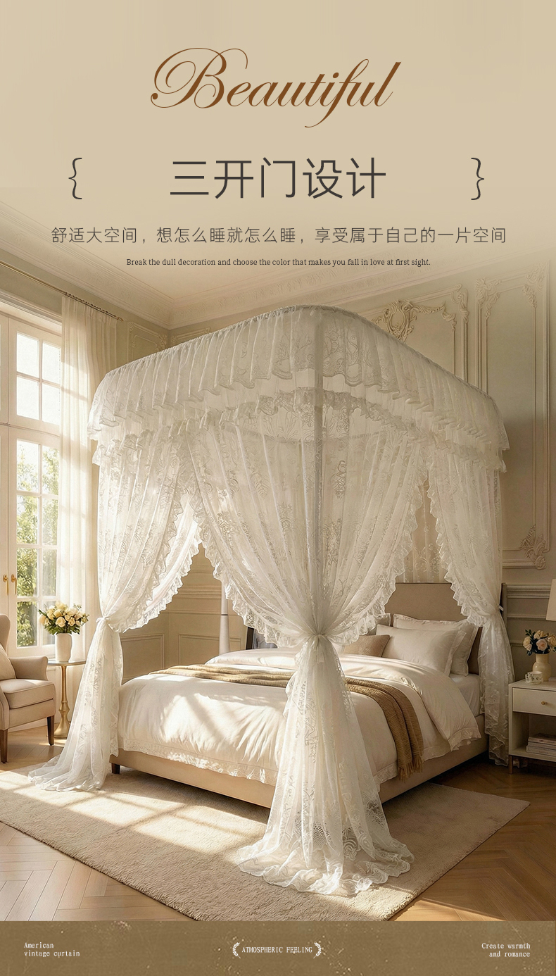 (总)都市缘蚊帐 2026新款浪漫905多丽棉纱落地宫廷蚊帐,麦芽杏-场景1,麦芽杏-场景2,粉扑色,摩卡,云雾白