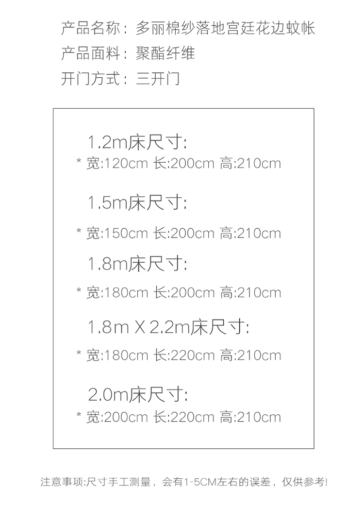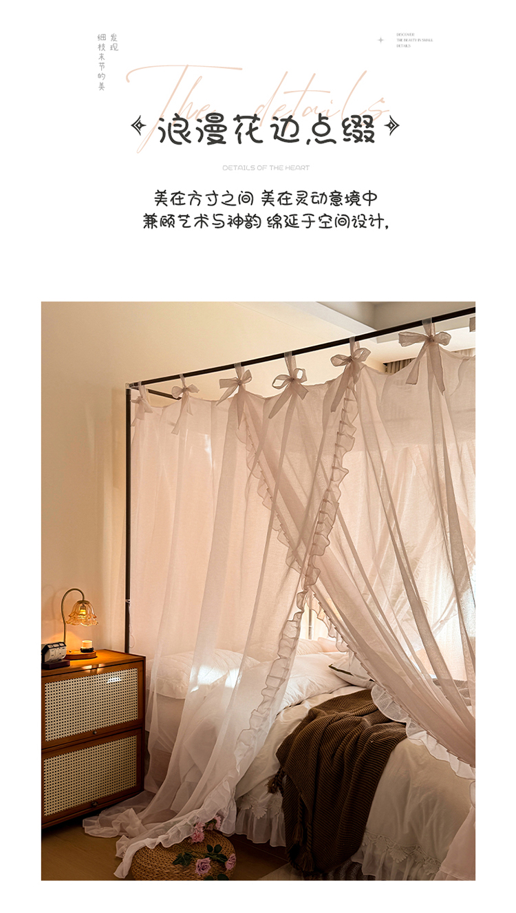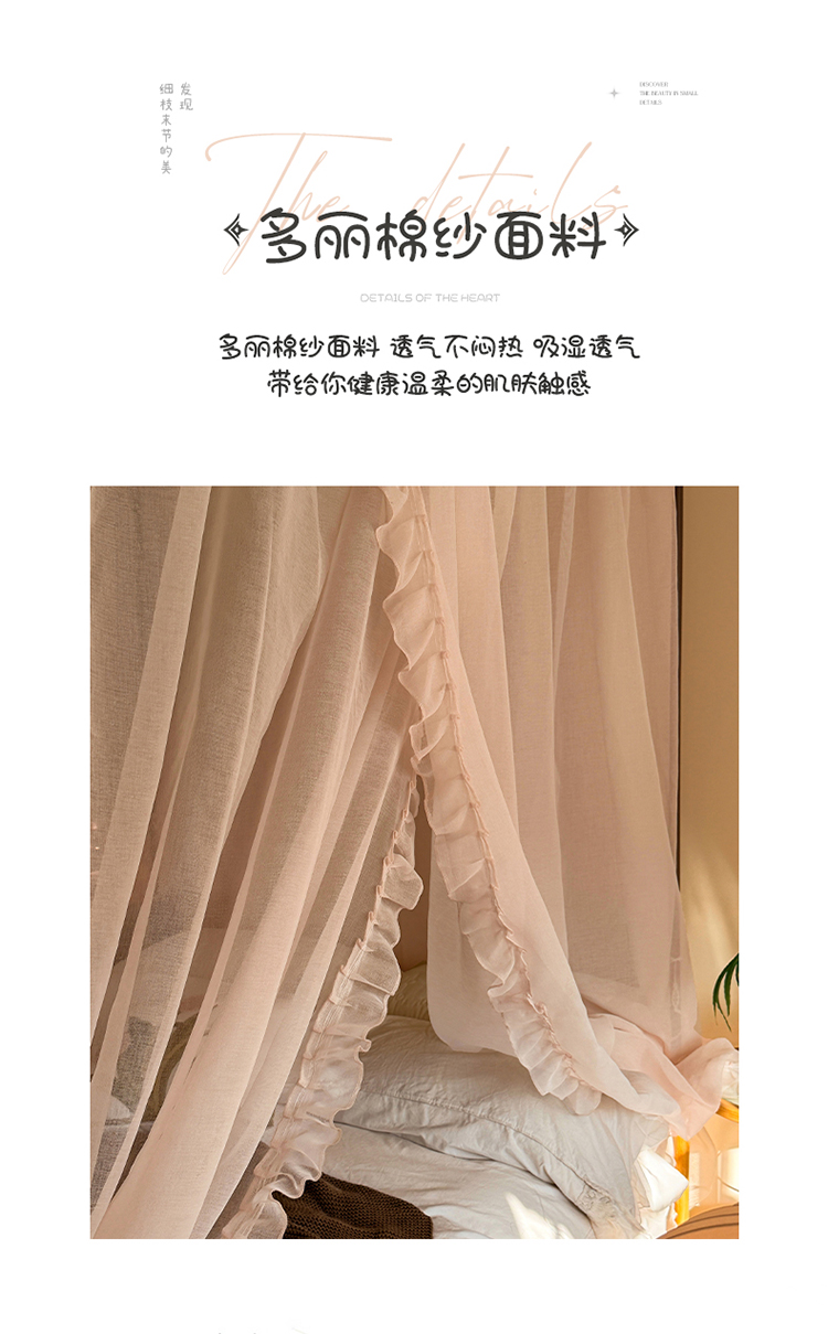 当前位置: 91家纺网 > 商品网购 > 床上用品 > 蚊帐 > 宫廷蚊帐 > 都市缘蚊帐 2026新款浪漫905多丽棉纱落地宫廷蚊帐 粉扑色