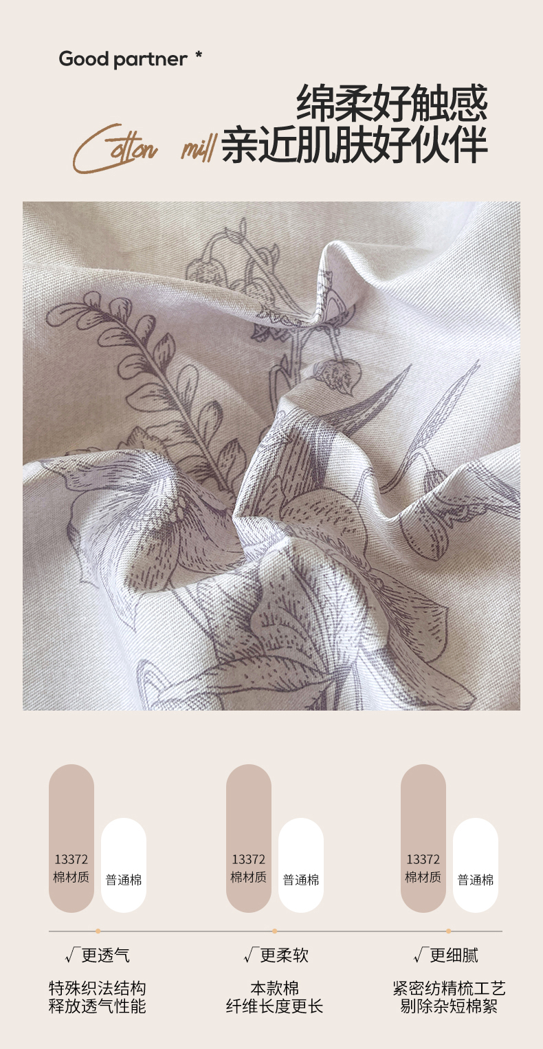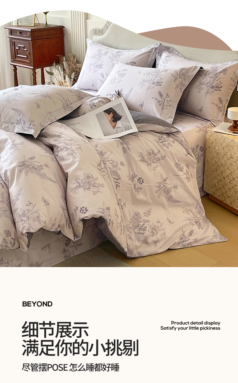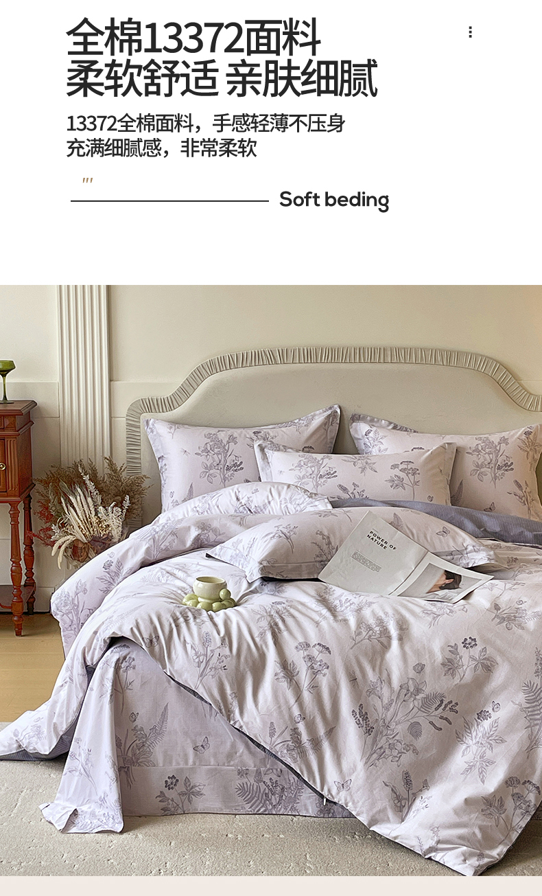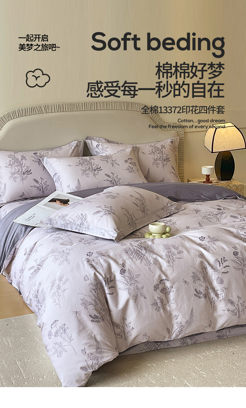 当前位置: 91家纺网 > 商品网购 > 床品套件 > 四件套 > 全棉普通四件套 > 宝齐莱家纺 2026新款全棉纯棉13372印花四件套 清雅