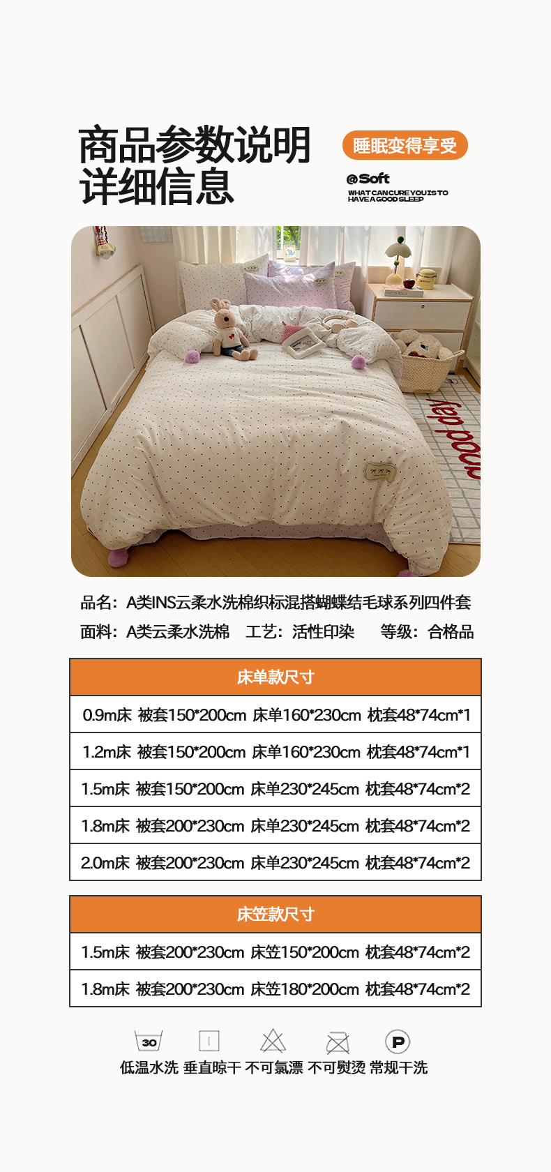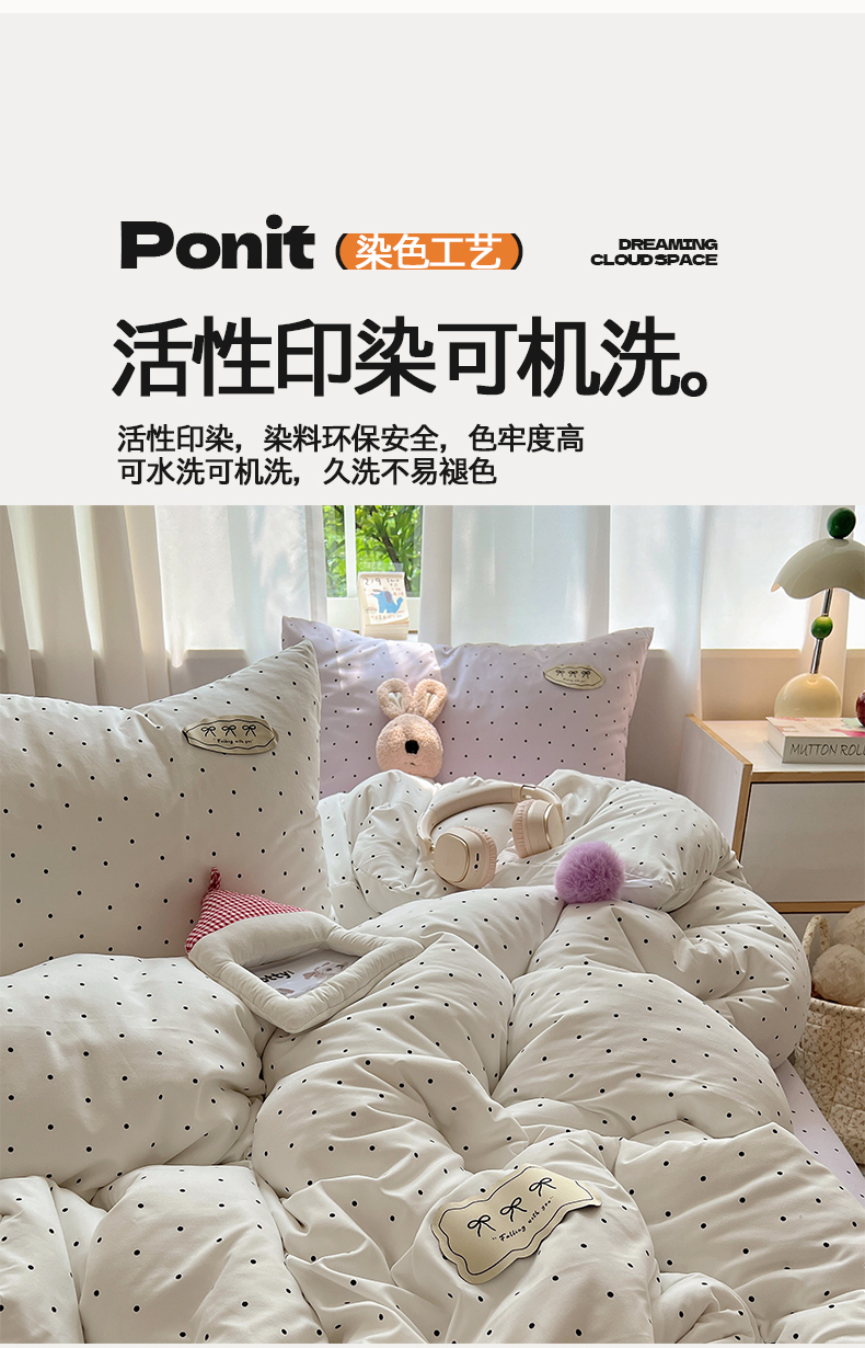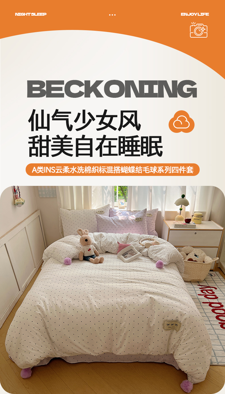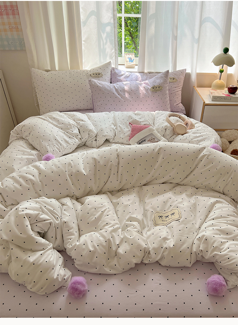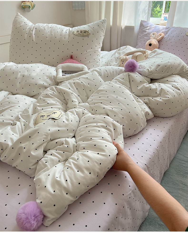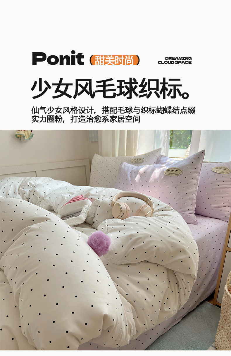 当前位置: 91家纺网 > 商品网购 > 床品套件 > 四件套 > 夏被四件套 > 桃心家居 2026新款A类ins云柔水洗棉织标混搭蝴蝶结毛球少女奶呼呼仙气四件套 水洗棉毛球-蝴蝶结芋泥波点