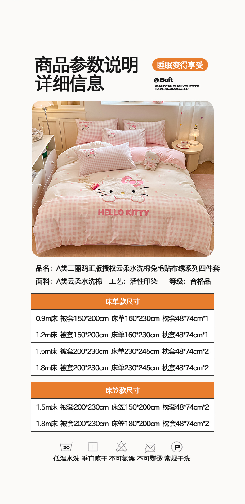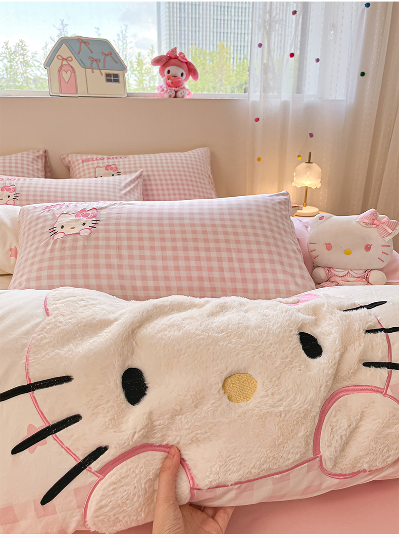 商品名称:(总)桃心家居 2026新款A类三丽鸥正版授权云柔水洗棉兔毛贴布绣刺绣软糯系列四件套