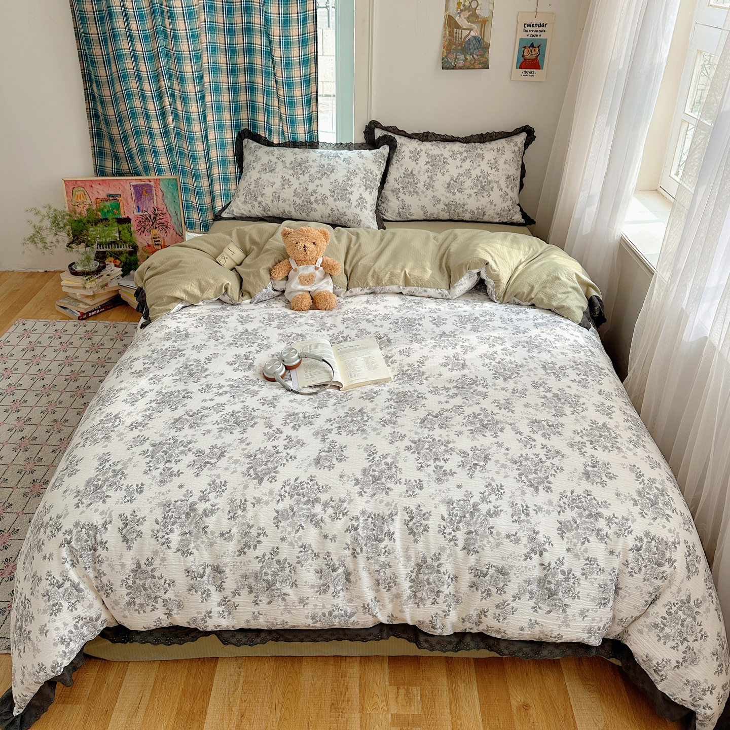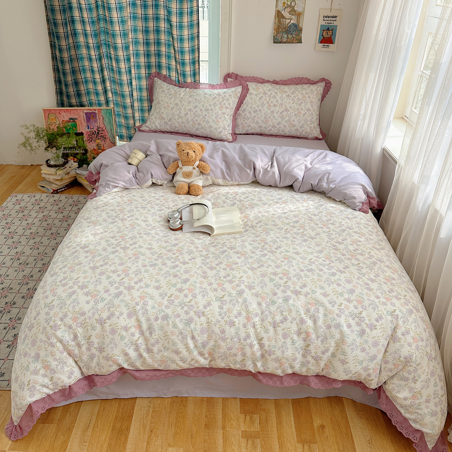 (总)一比一 2026新款云感皱皱双层纱四件套-全棉花边款【控价99元销售】,半夏绿,百福蓝,薄荷微凉,春风里,春晓,豆蔻,蝴蝶梦,可颂,兰黛,山野栀子,素颜,太妃糖,心动,遇见,芝士奶酪,紫爱心,紫苏,花园兔,蜡笔画,小黑兔,白茶-绿,初恋,莱茵河畔,桃花诺