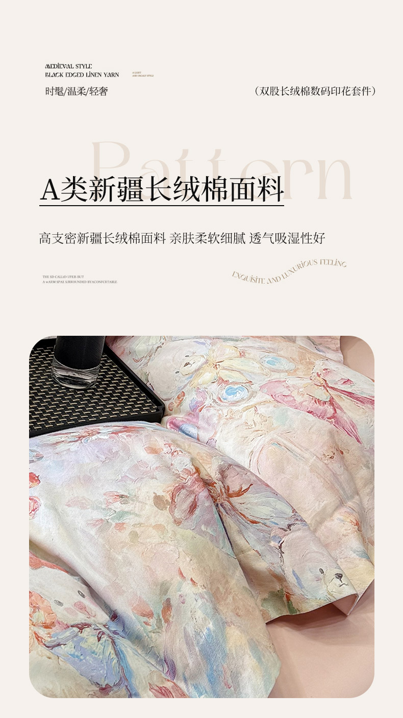 当前位置: 91家纺网 > 商品网购 > 床品套件 > 四件套 > 长绒棉四件套 > 2026新款A类100支长绒棉纯棉四件套全棉数码印花被套床单床笠田园风床上用品 黛梦-粉