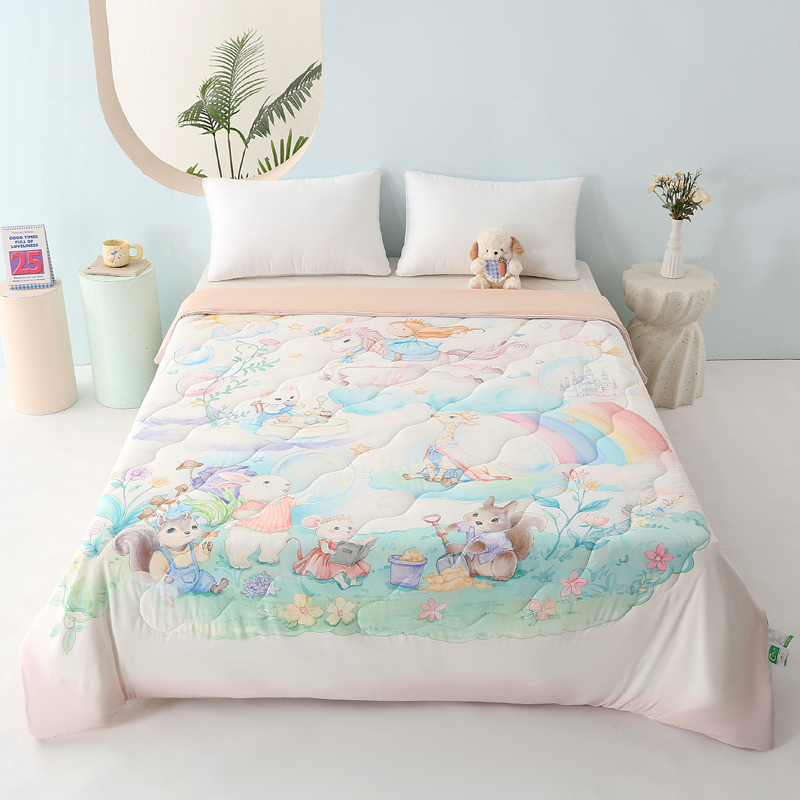 商品名称:天之悦家纺 2026新款夏被大版数码云母冰丝夏凉被空调被 柔玉粉