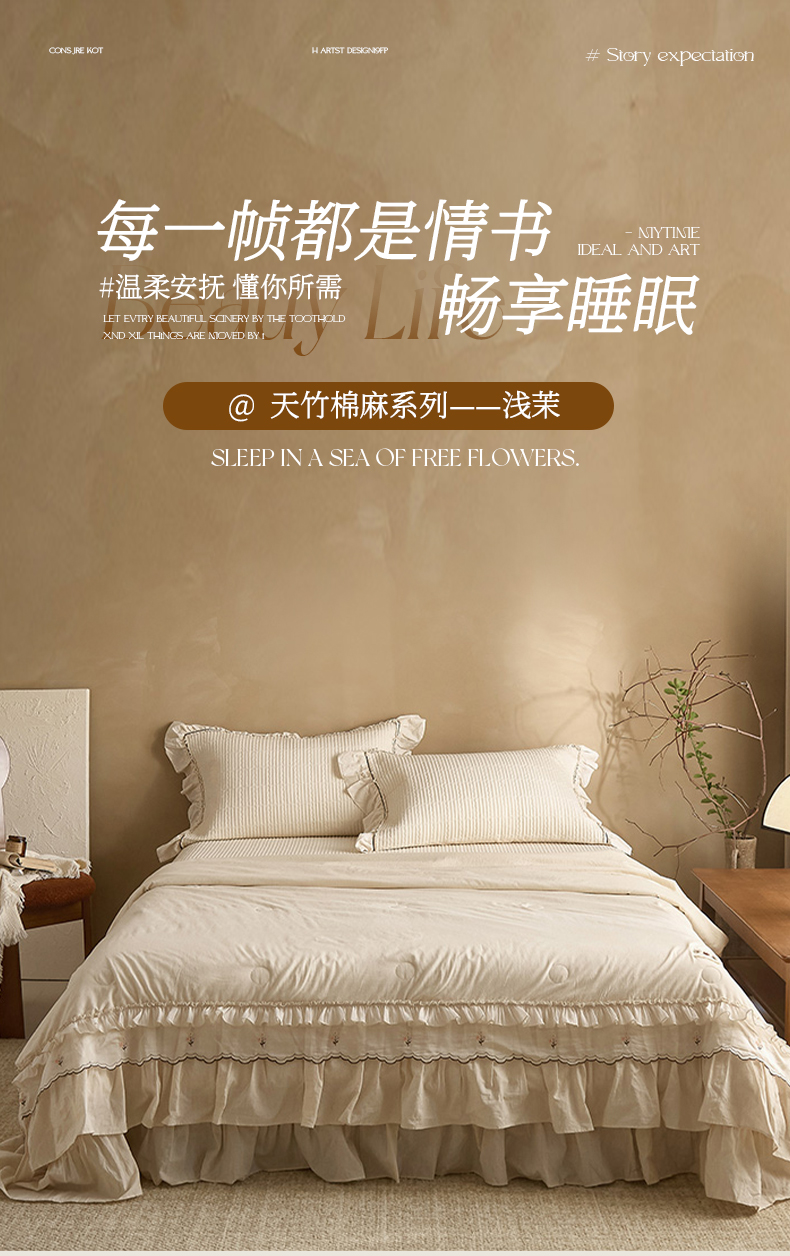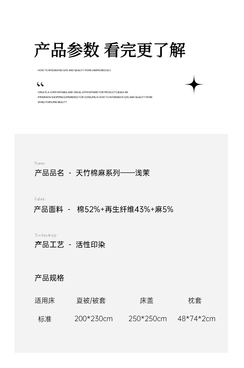 商品名称:(总)红夫人 2026春夏新款床盖款多功能夏被床盖天竹棉麻系列四件套-浅茉