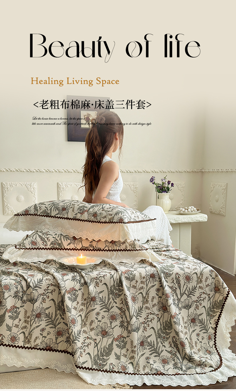 (总)乐朵家居 2026新款 全棉棉麻 老粗布 凉席三件套