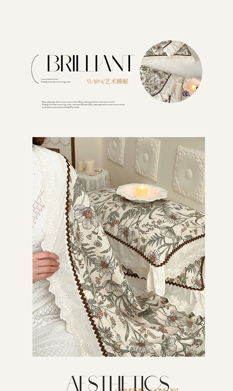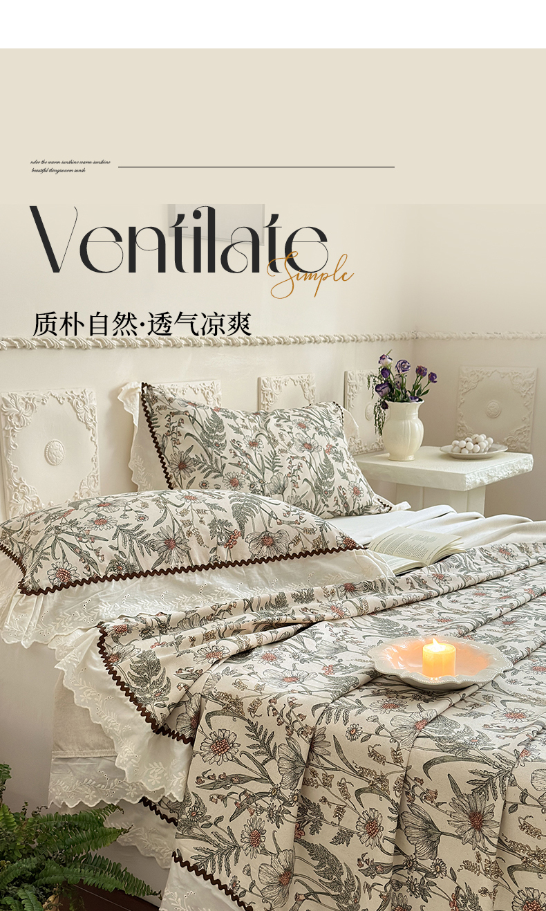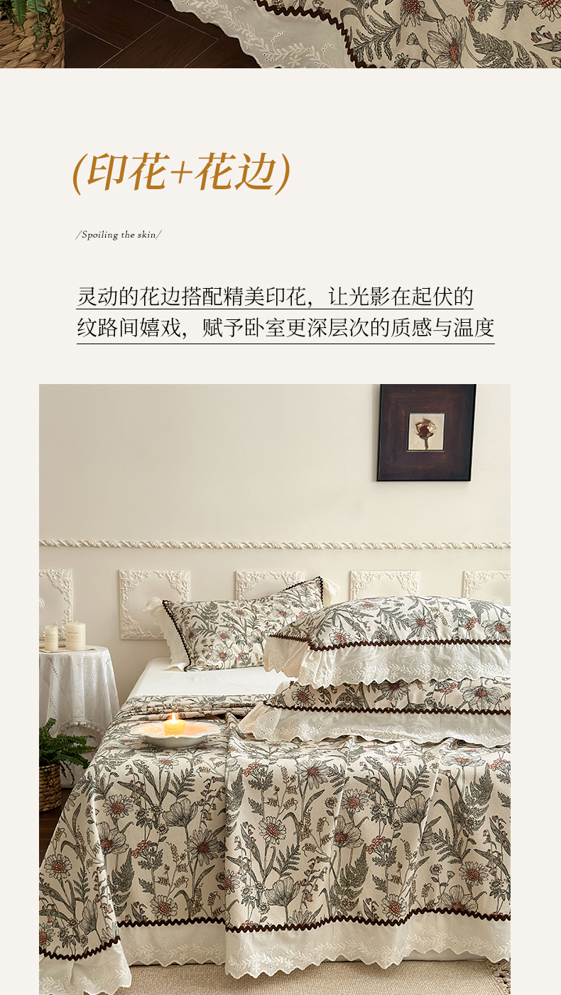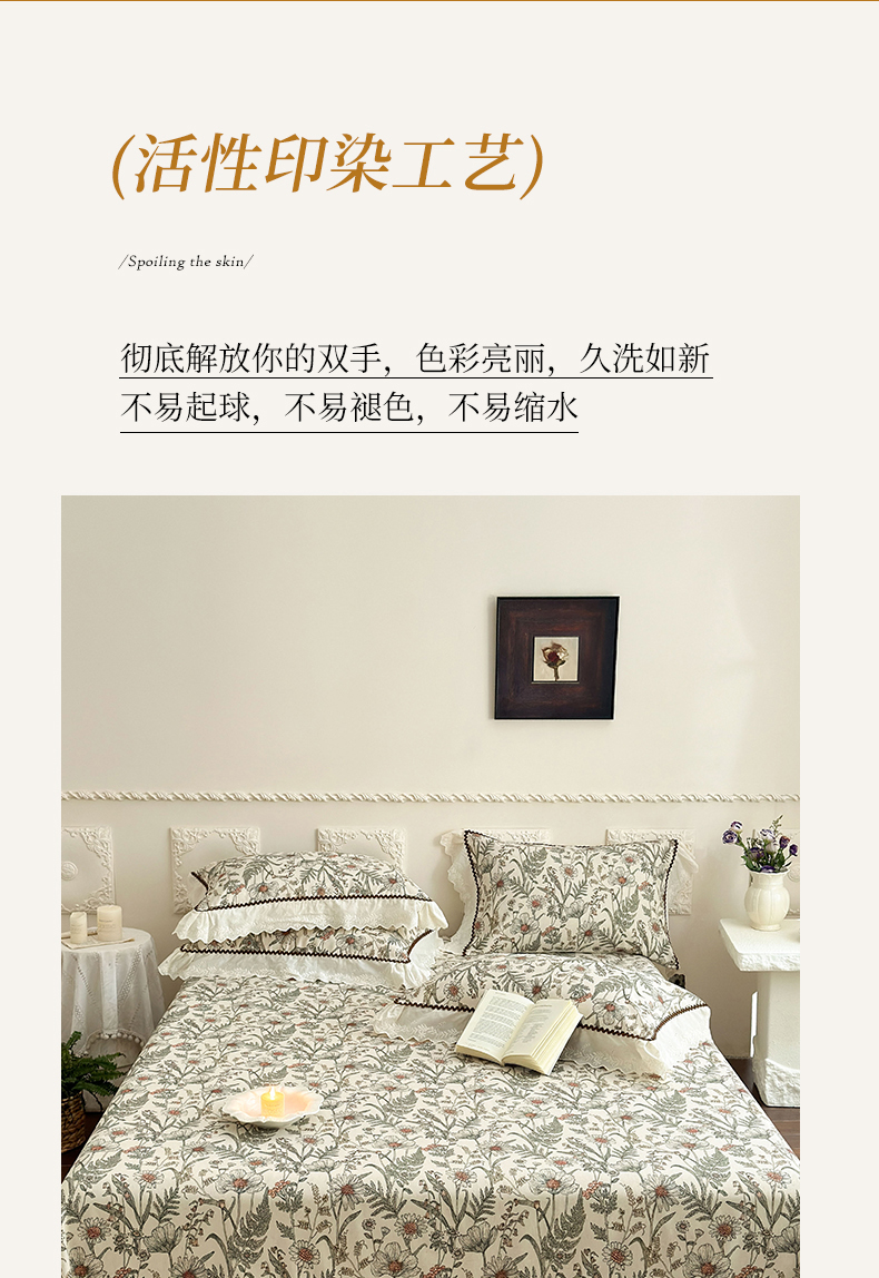 (总)乐朵家居 2026春夏 秘密花园 全棉水洗棉床单款VS夹棉床盖四件套 (控价单288夹棉388),蓝,卡其,白,玉