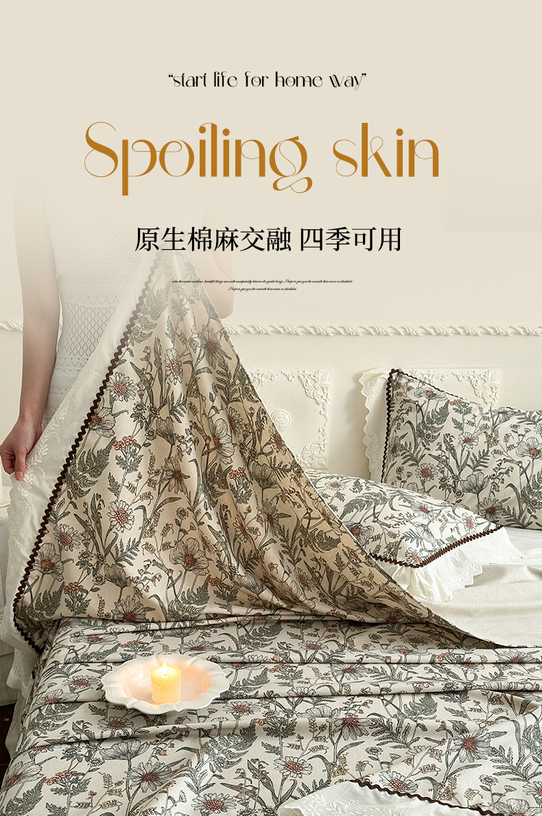 (总)乐朵家居 2026春夏 南木 全棉棉麻床单款夹棉床盖款 四件套,本色,奶咖