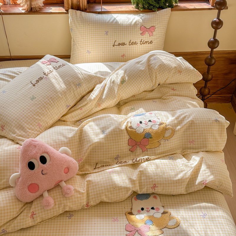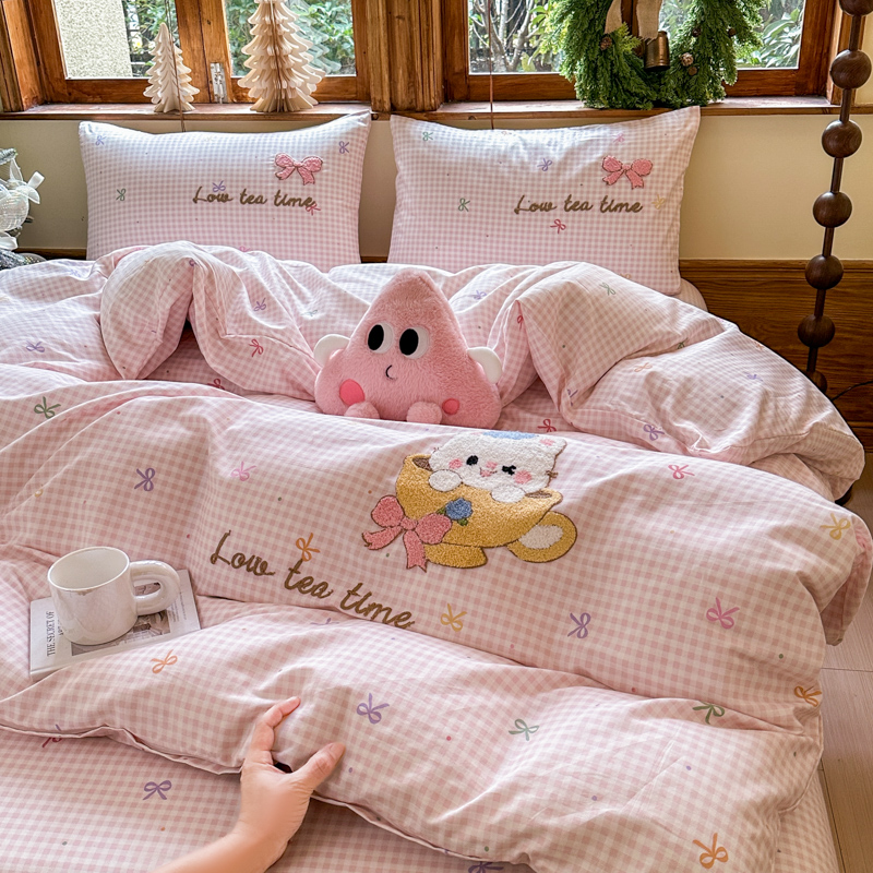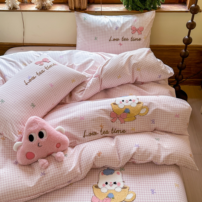 (总)布柔 2025新款毛巾绣花卡通ins风牛奶绒床笠床笠单件单床笠-甜心,甜心米,甜心粉,甜心咖