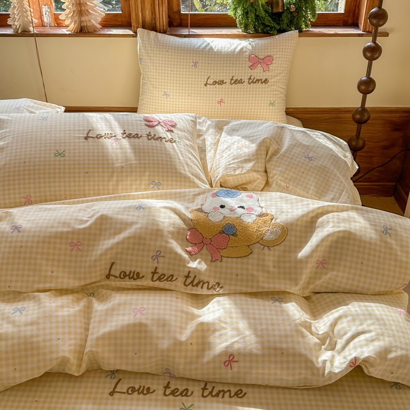 (总)布柔 2026春夏新款13070纯棉全棉印花绣花床笠三件套四件套,曲奇粉,曲奇黄,曲奇蓝