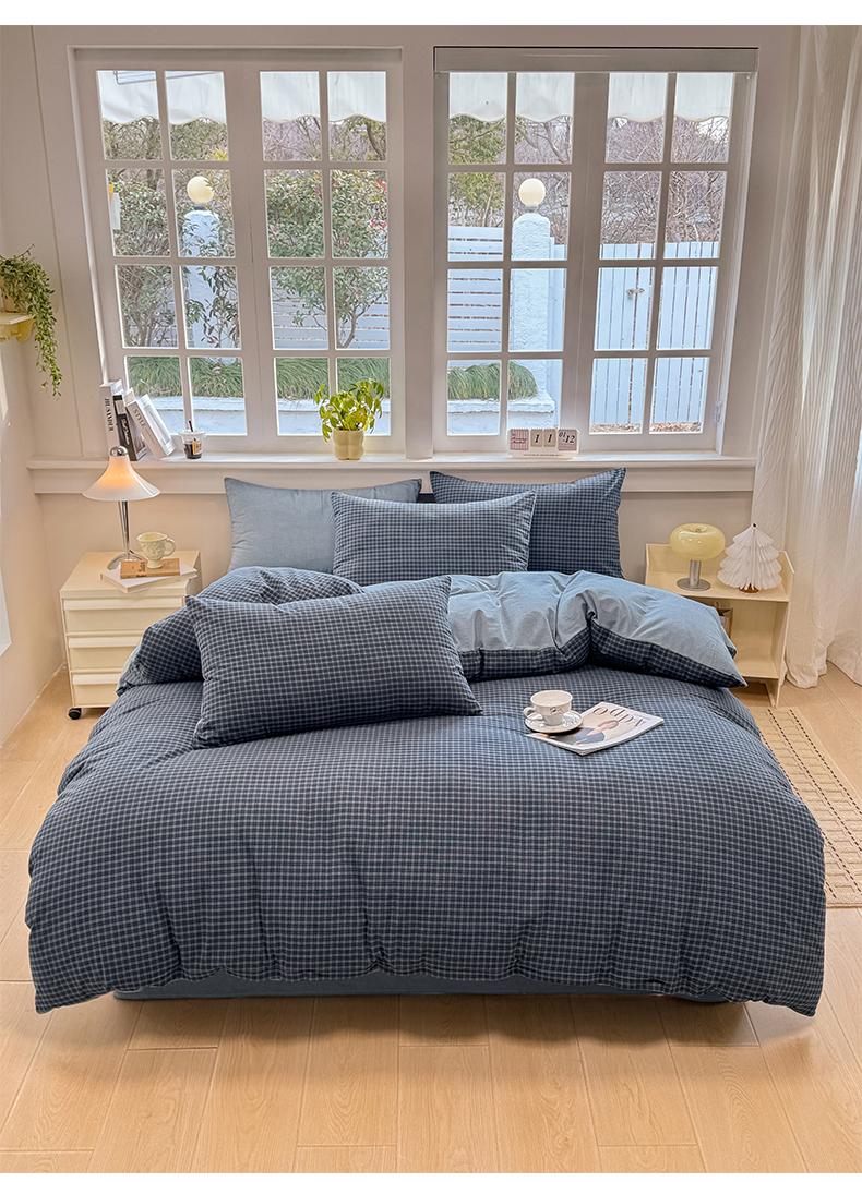 (总)梦依依 2026新款全棉色织水洗棉拉链款四件套,玛丽兰,巴赫兰,琥珀红,琥珀灰,浣花粉,蓝细条,蓝小格,玛丽绿,木槿黑,木槿咖,柠檬卡其,晚晴红,云岫兰咖,云岫绿咖