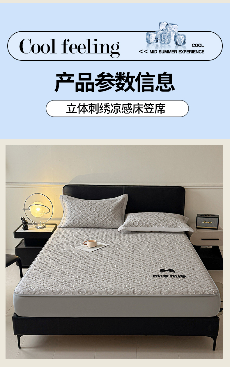 商品名称:梵克保罗 2026春夏新款立体刺绣乙纶夏凉凉席-蝶韵-床笠款 蝶韵 冰浅灰