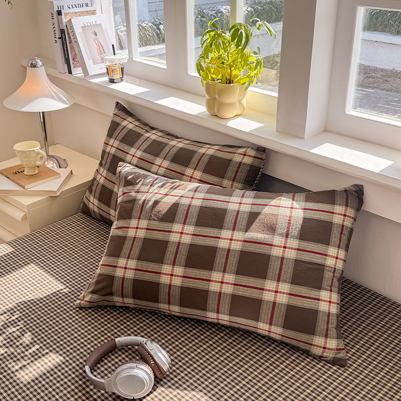 梦依依 2026新款全棉色织水洗棉拉链款单品枕套 木槿黑