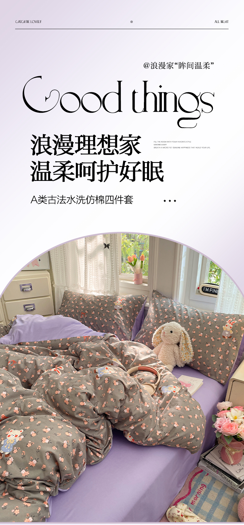 当前位置: 91家纺网 > 商品网购 > 床品套件 > 四件套 > 化纤普通四件套 > 卡斯诺家纺馆 2026新款古法水洗仿棉四件套(下载文件包含买家秀) 森屿花兔