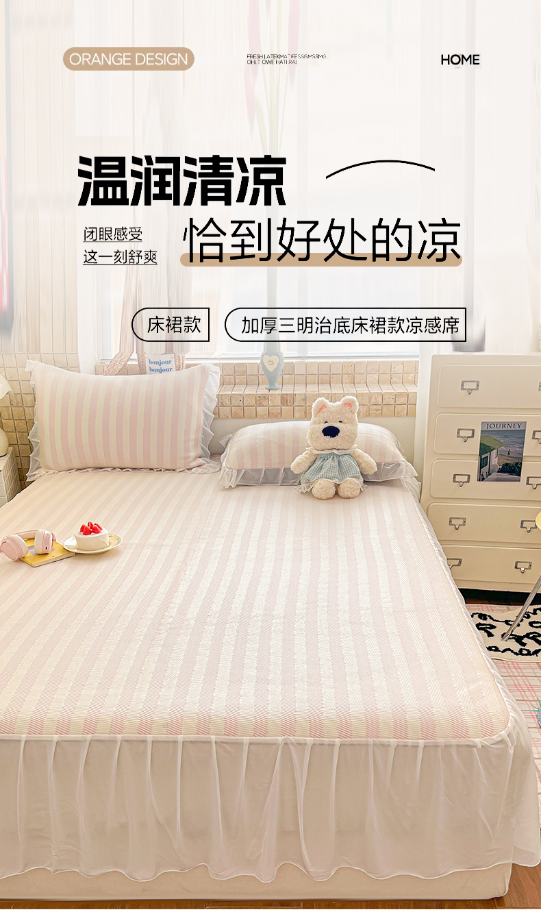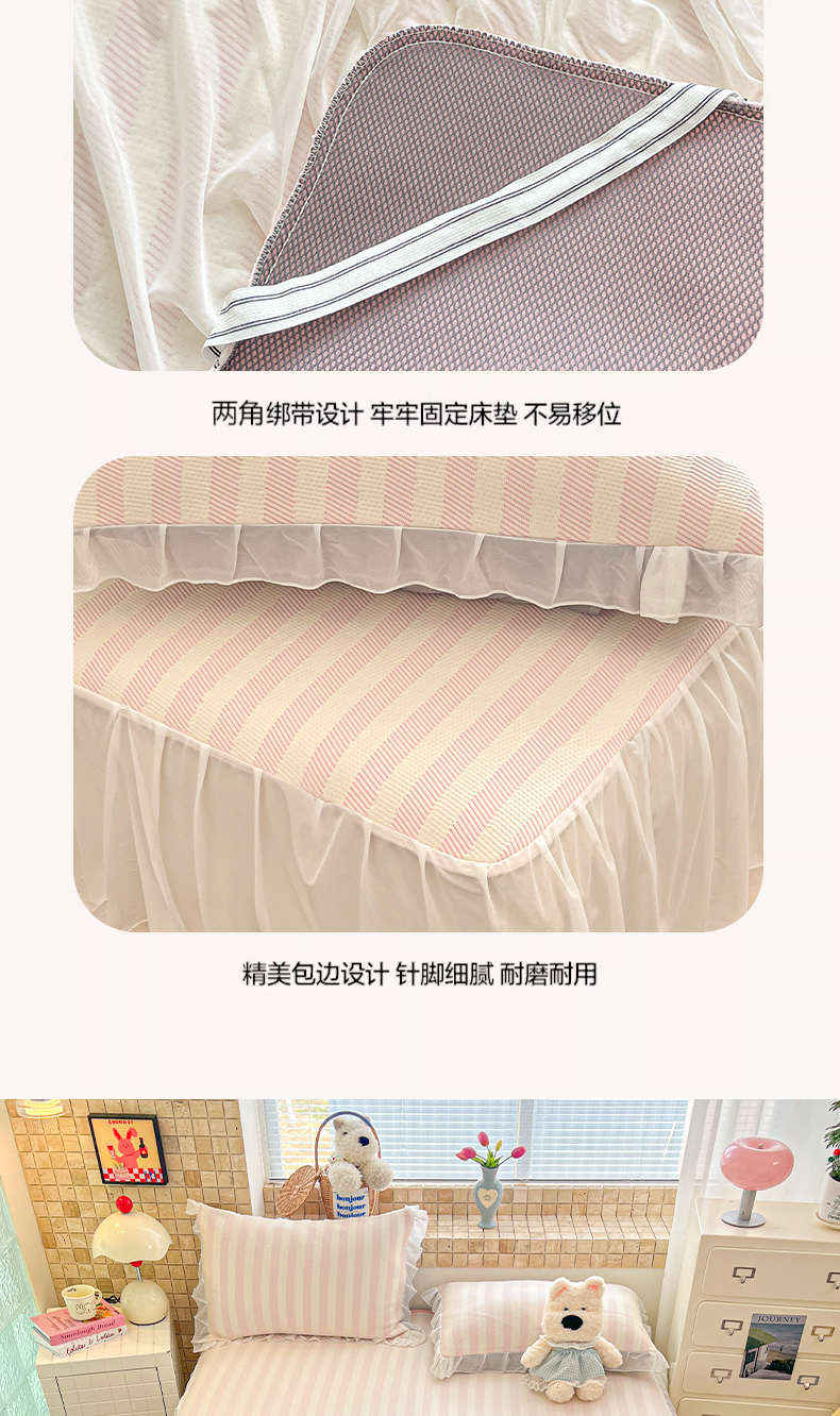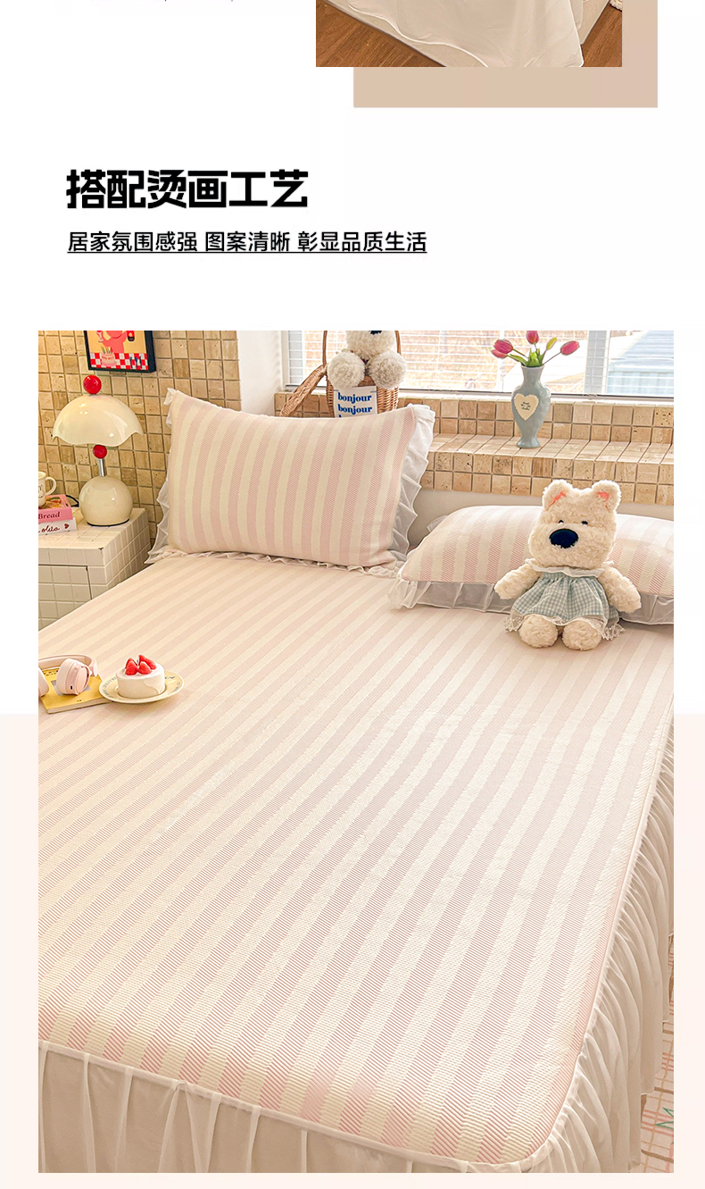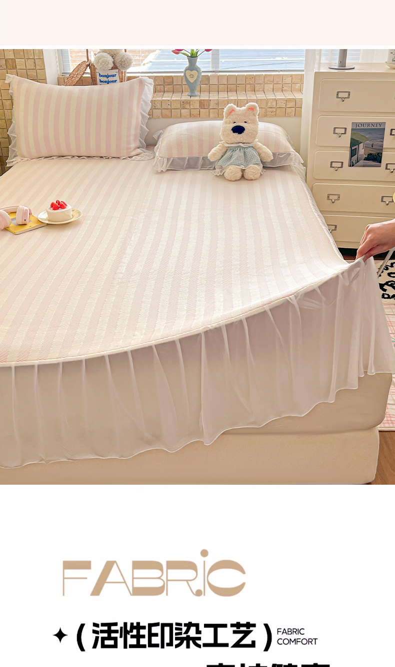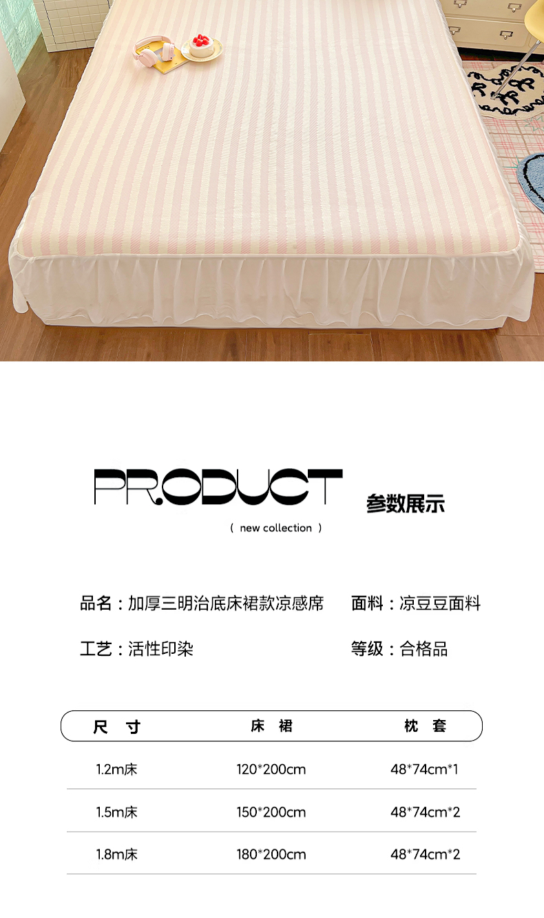 商品名称:川悦生活 2026新款加厚三明治底床裙款凉感席三件套 床裙甜心-奶粉