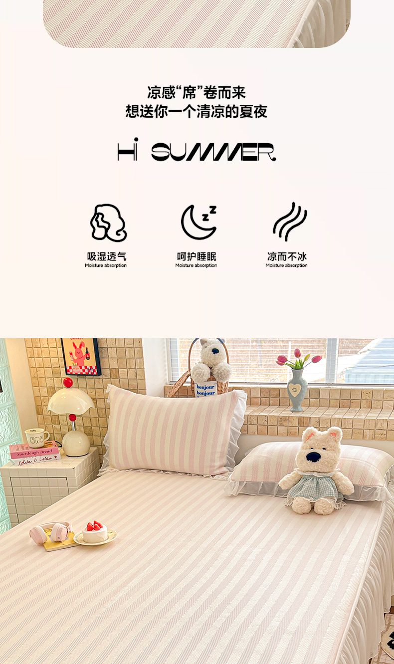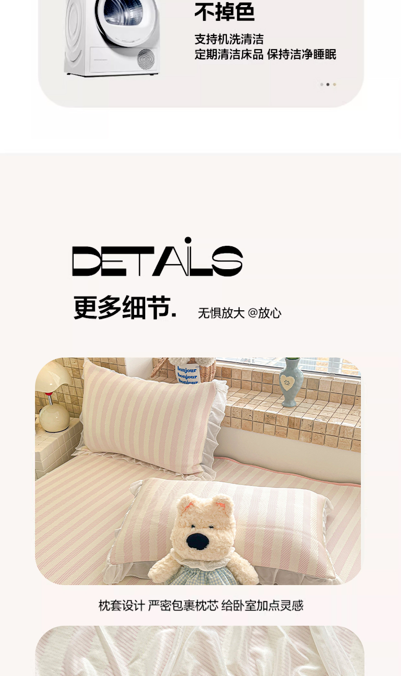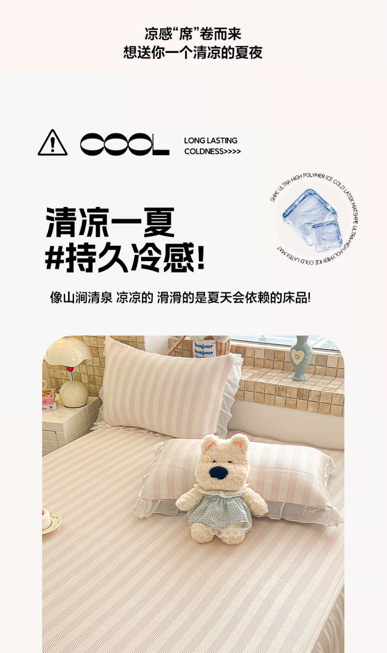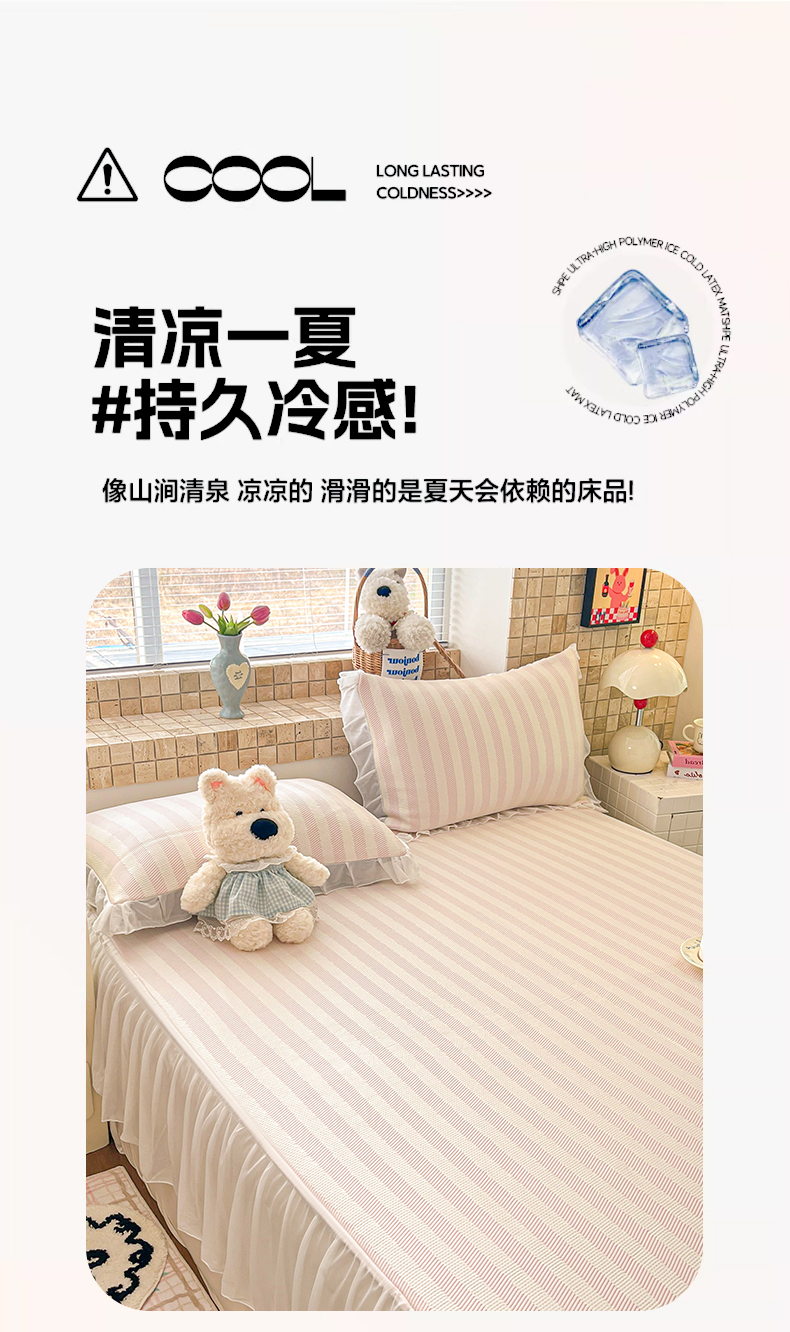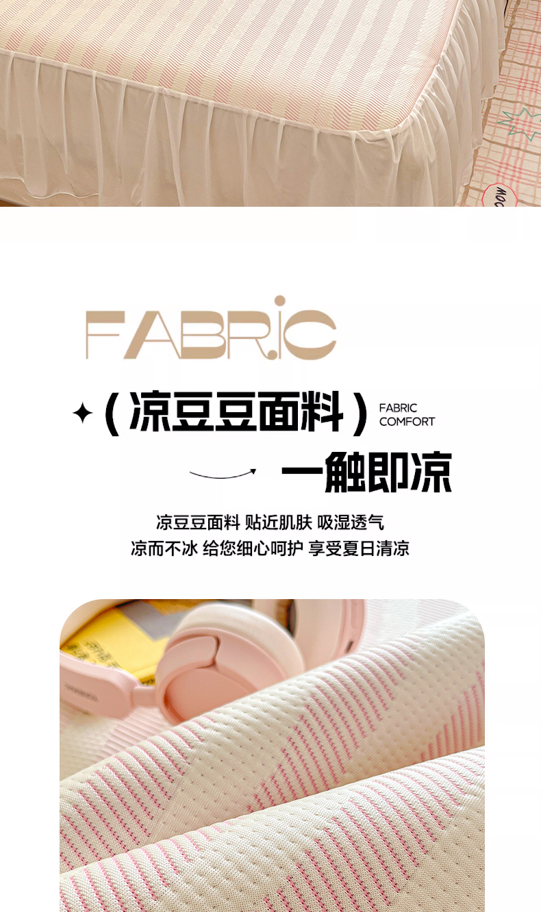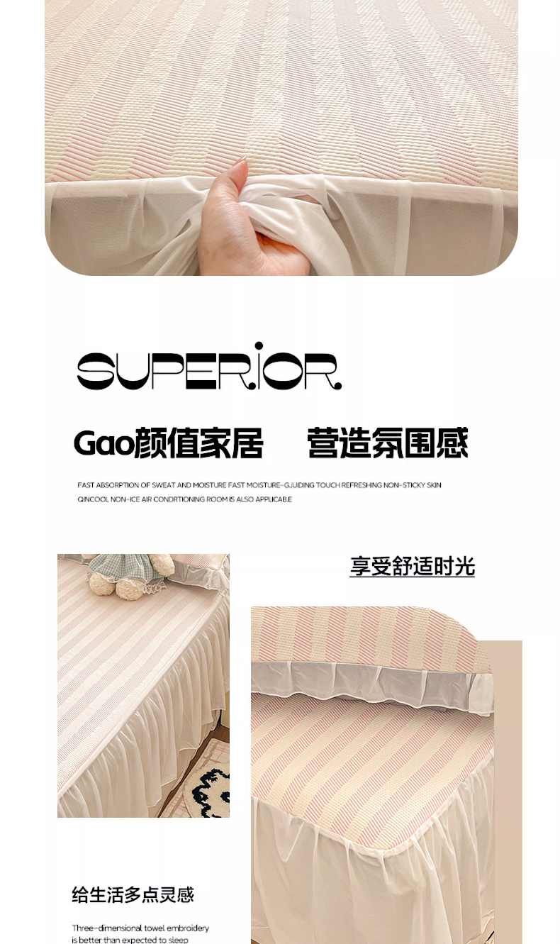 商品名称:川悦生活 2026新款加厚三明治底床裙款凉感席三件套 床裙甜心-奶粉