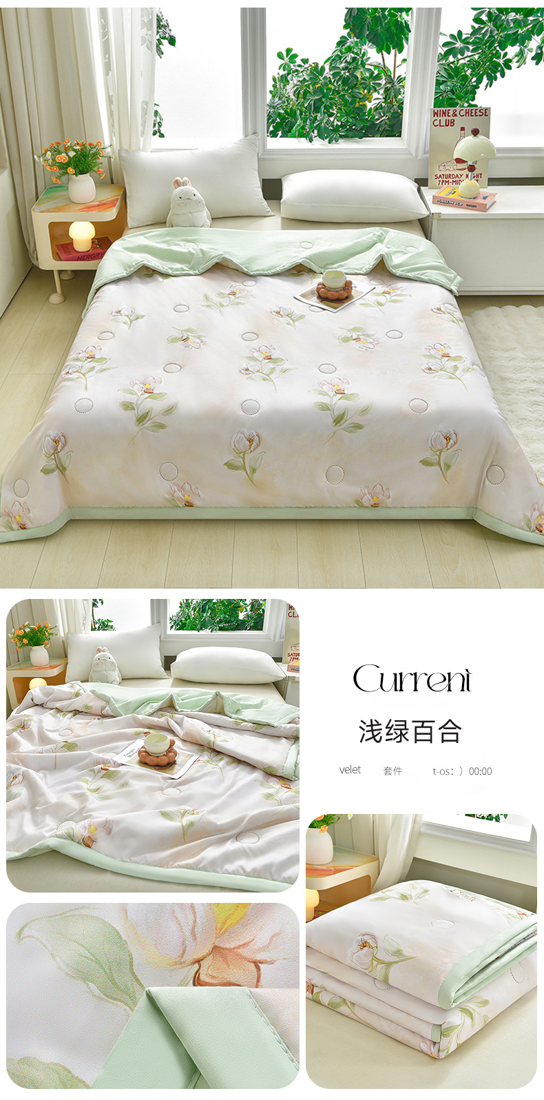 商品名称:念家居 2026新款水洗棉夏被夏凉被空调被直播爆款 浅绿百合