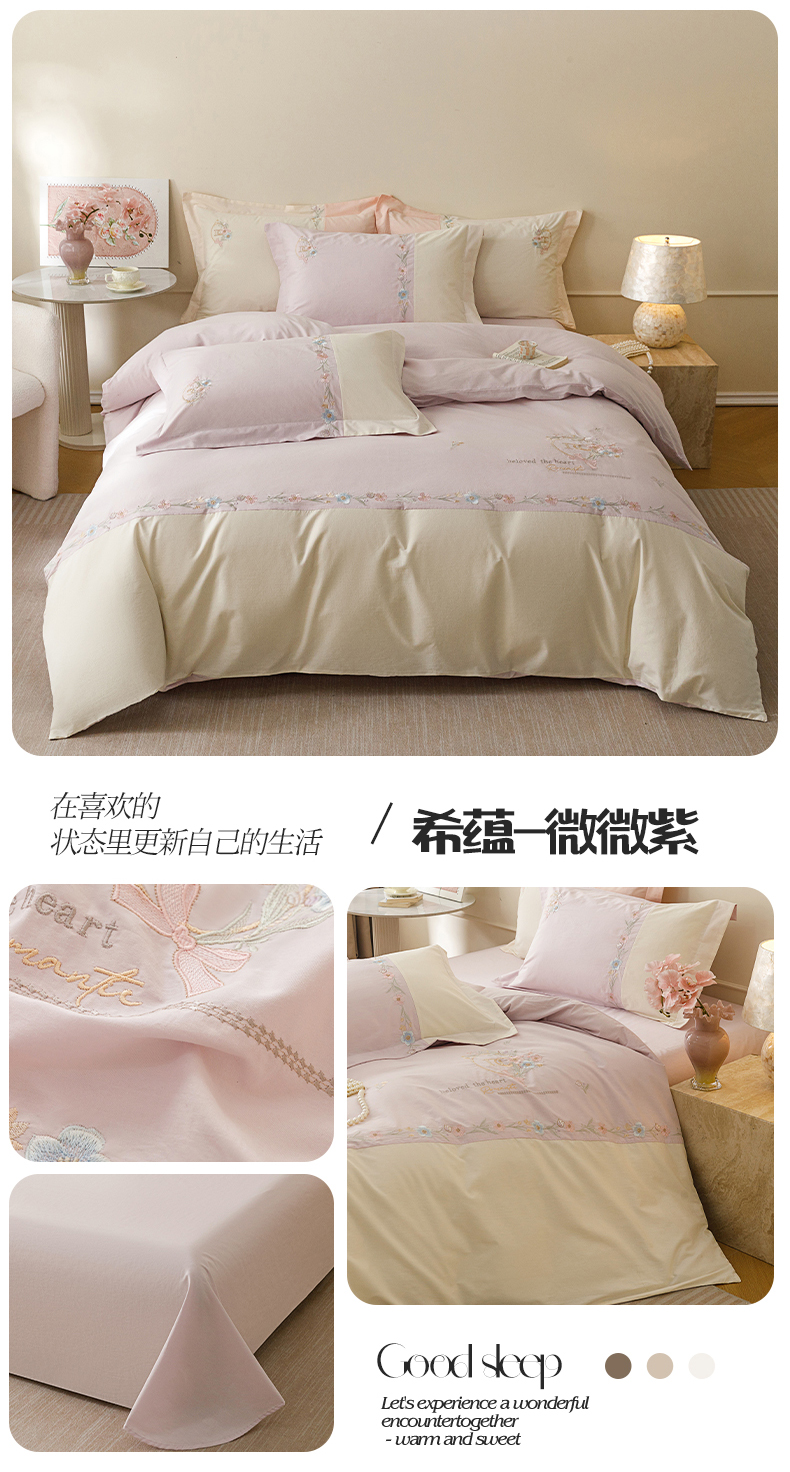 当前位置: 91家纺网 > 商品网购 > 床品套件 > 四件套 > 全棉普通四件套 > 艾莱家纺 2026春夏新款全棉纯棉水洗棉刺绣加厚四件套-希蕴 希蕴-淡奶油