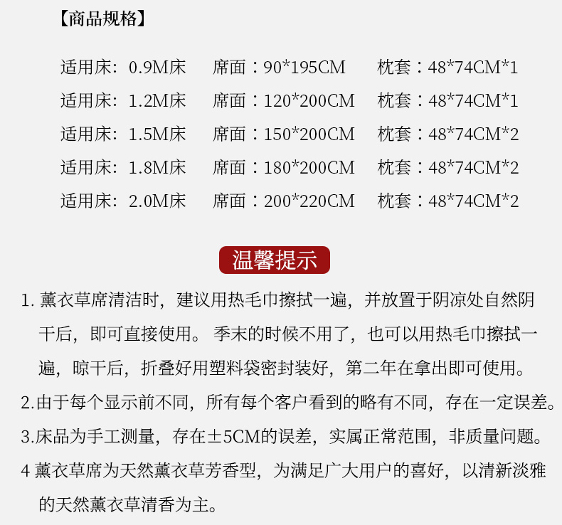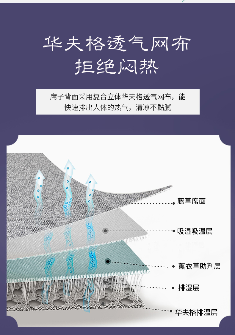 商品名称:小牛席业 2026新款加厚款经典藤席面薰衣草清香席凉席席子 薰衣草清香席-灰色