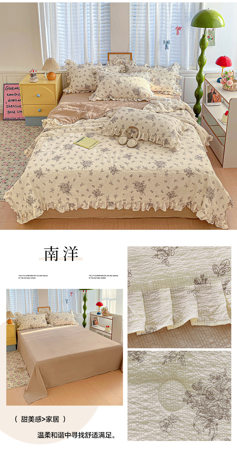 商品名称:蓝极人 2026新款泡芙棉花边夏被四件套 XB桔园