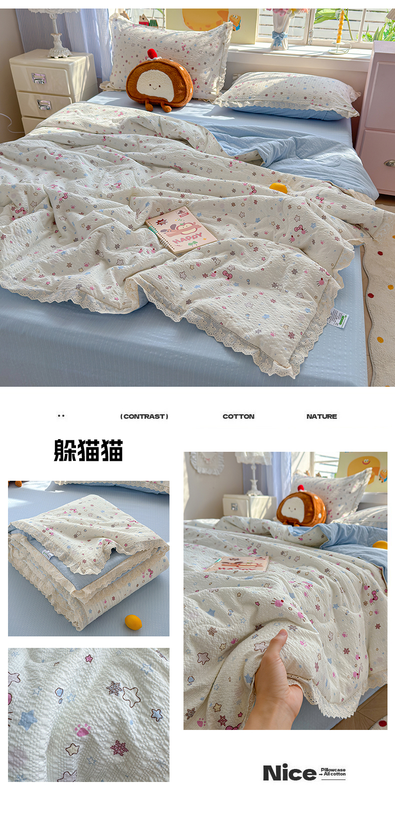 (总)弗苓家纺 2026新款高克重泡芙棉花边款夏被夏凉被空调被四件套小红书推荐-风格二,小红帽,熊熊乐园,音乐喵,海盐草莓,南瓜派对,英伦小熊,旋转木马,复古繁花,汪星人,暖橘枝,柔诗意,悦悦小兔,花有花期,日光漫游,樱桃笔记,蓝粉萌团,格格星,星芒凯蒂,描线小猫-咖,秋末南瓜星,栗色木马纹,松间茶事,片刻小狗,小猫幻境-灰,花筐少女,浅蓝花枝,蓝雪草,贝壳星,躲猫猫,蓝缎结,浅川纹,旧街星星,马上有钱,躲雨小兔,木马小花团,微风花园,幸福加马,条纹星,组合图(仅供展示不可下单)