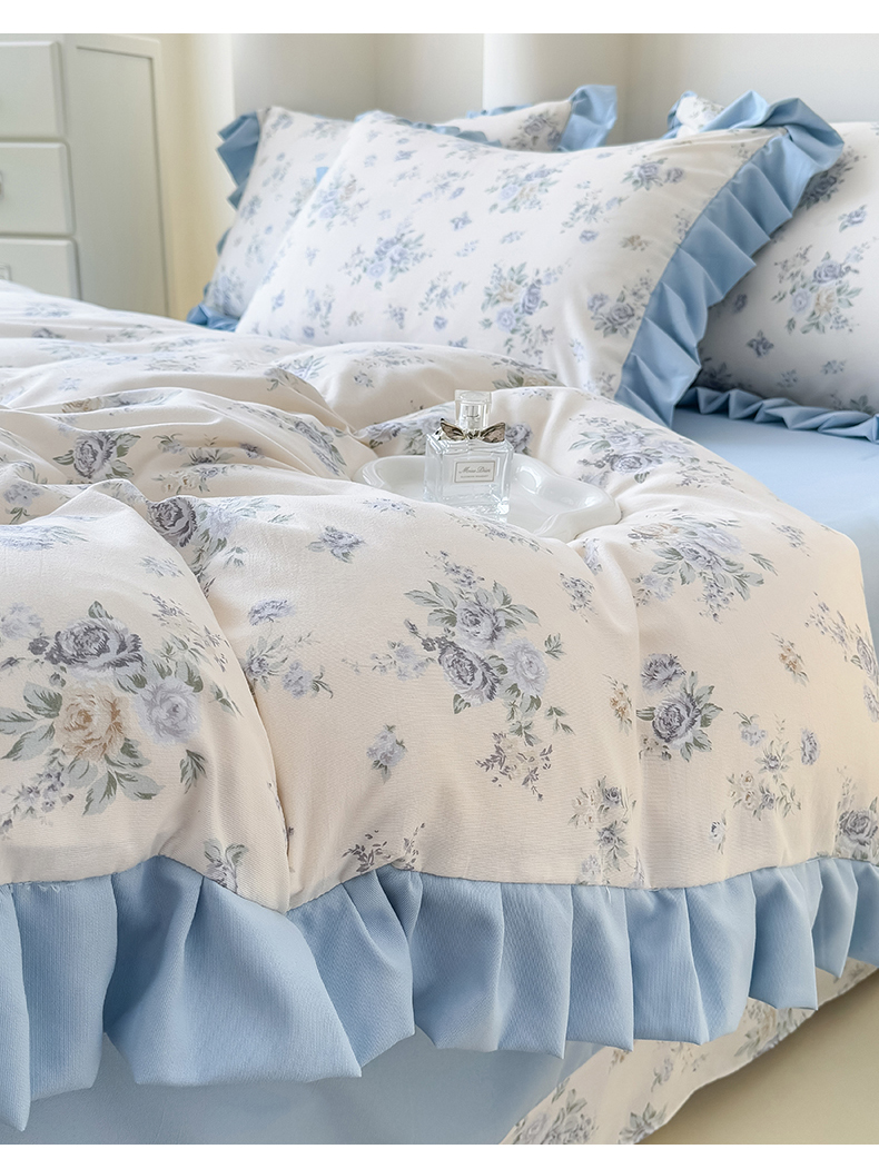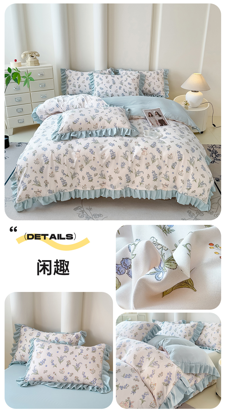 当前位置: 91家纺网 > 商品网购 > 床品套件 > 四件套 > 其它四件套 > 晚爱家纺(原晚安家居) 2026韩版花边四件套 有氧针织双层纱天竺棉超柔小清新四件套 玫瑰