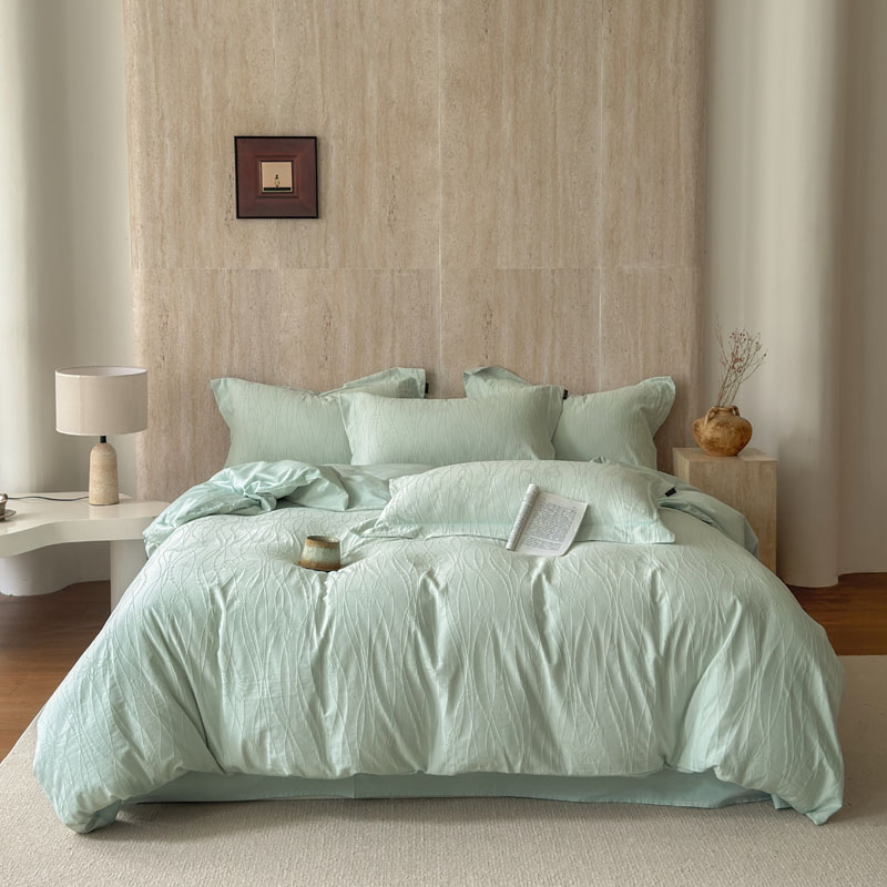 莱豫家纺 2026春夏新款长绒棉全棉纯棉水洗浮雕提花四件套 魅奇