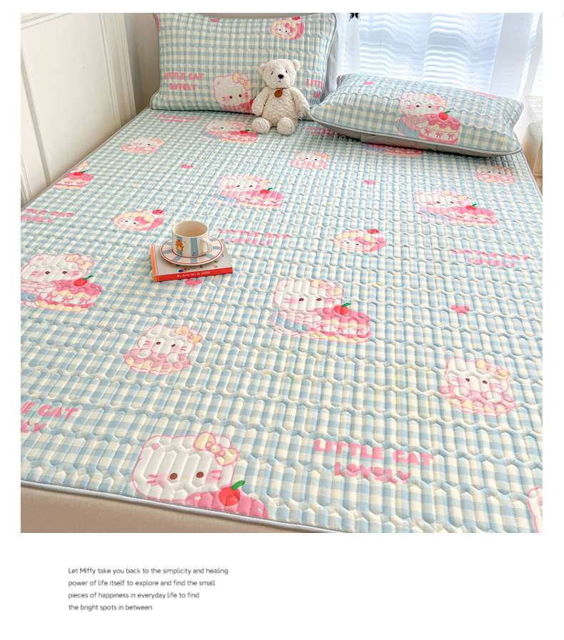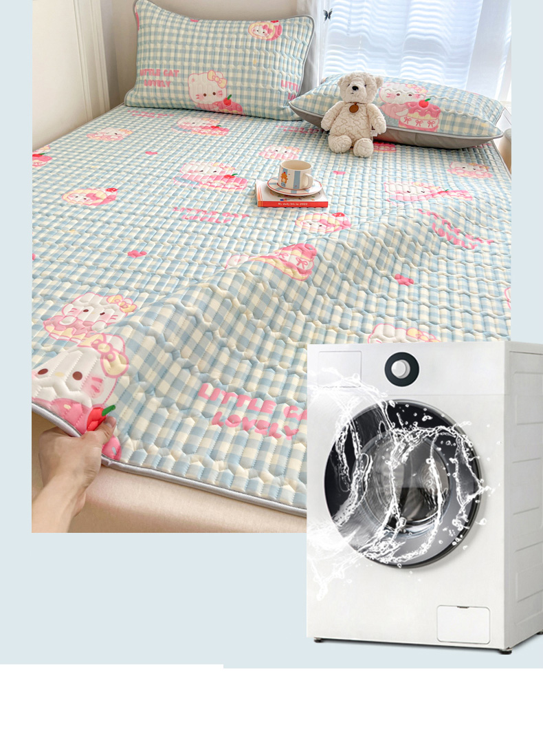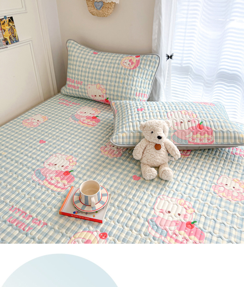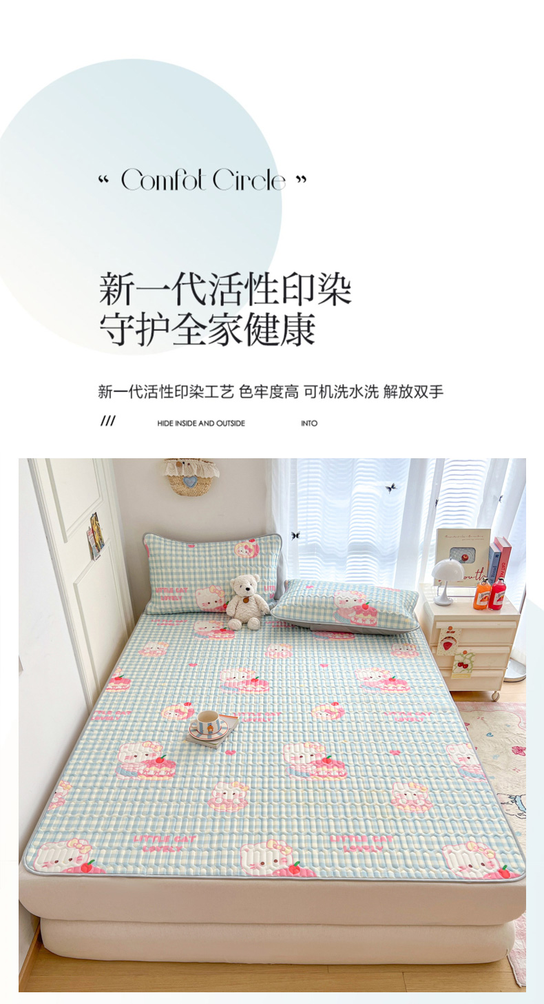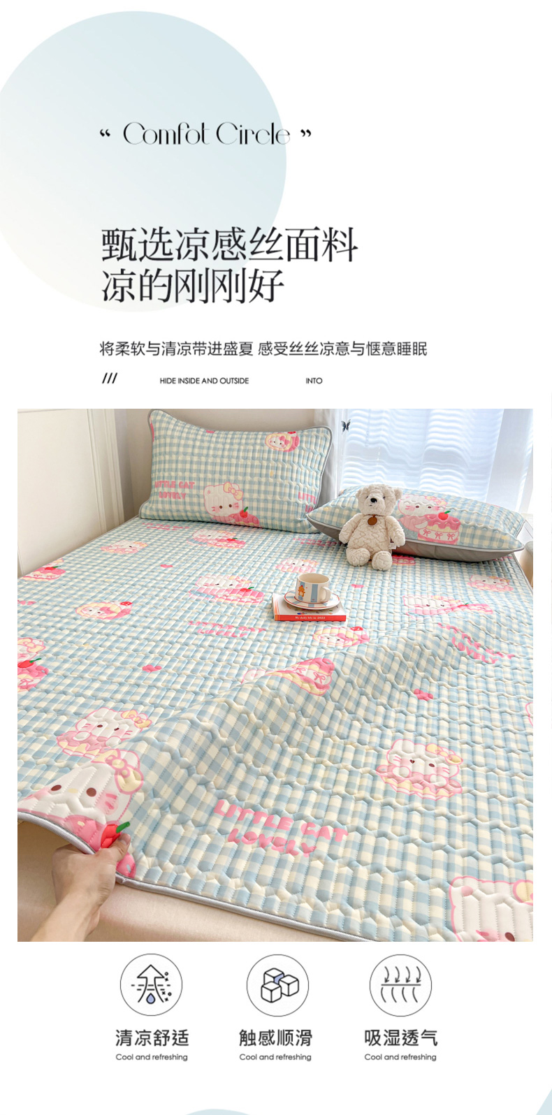 商品名称:柒月家居 2026新款凉感丝小清新乳胶凉席 蓝格甜猫