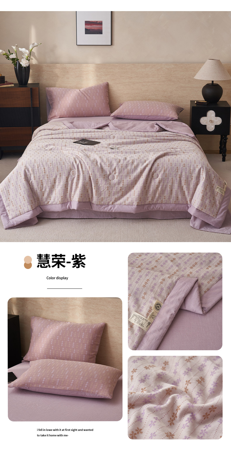 (总)简如 2026新款全棉色织提花里外全棉夏凉被四件套,爱心-兰,柏锦-蓝,柏锦-玉,柏锦-紫,爱心-粉