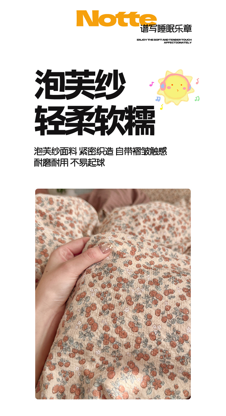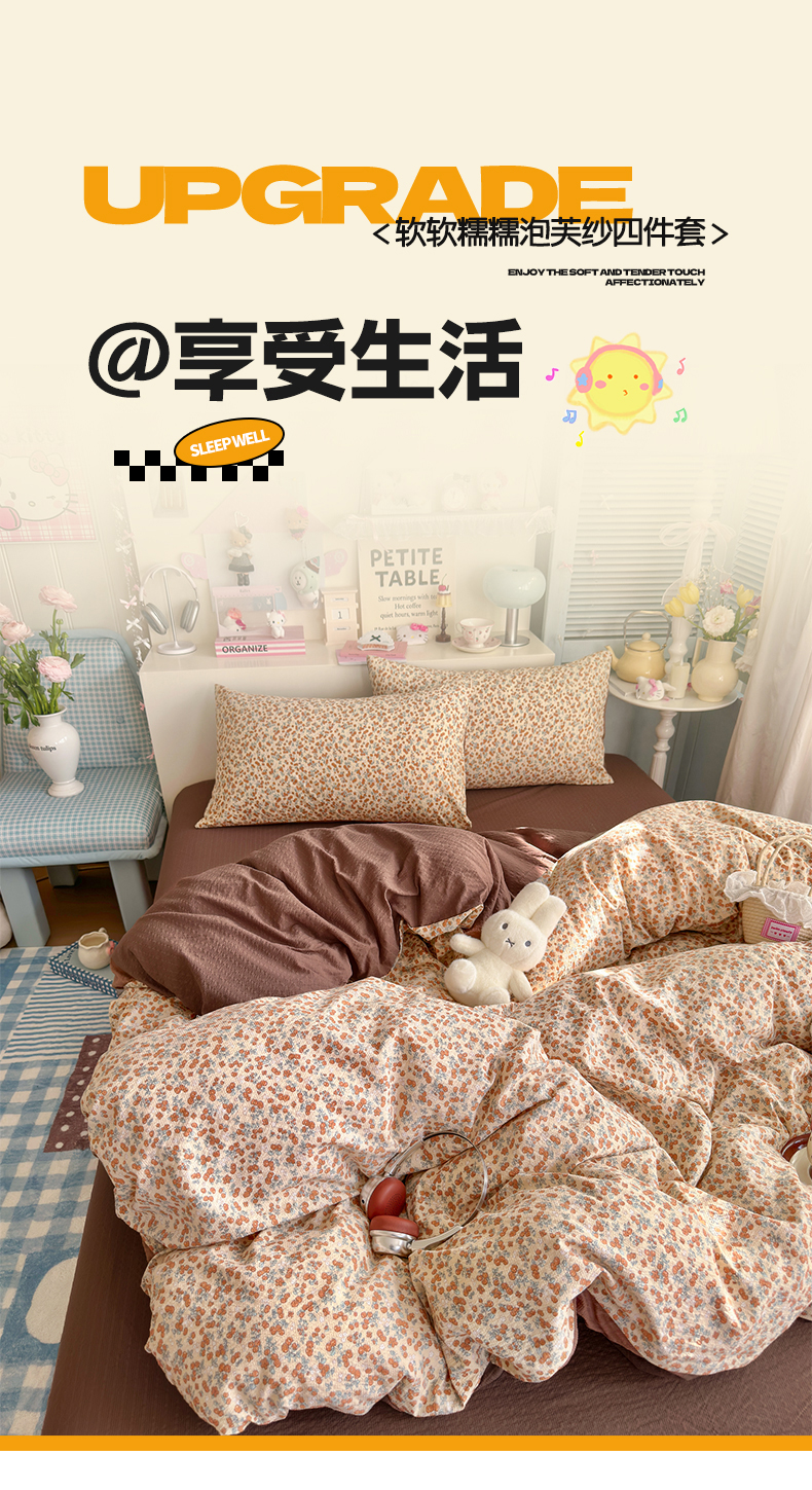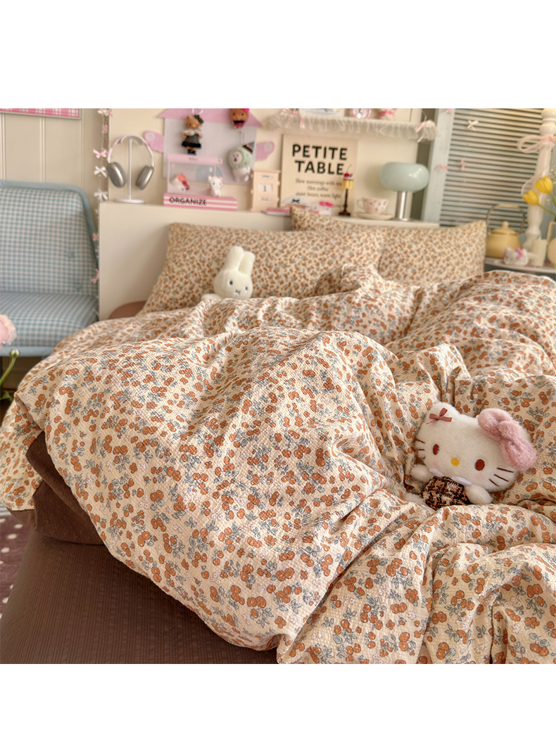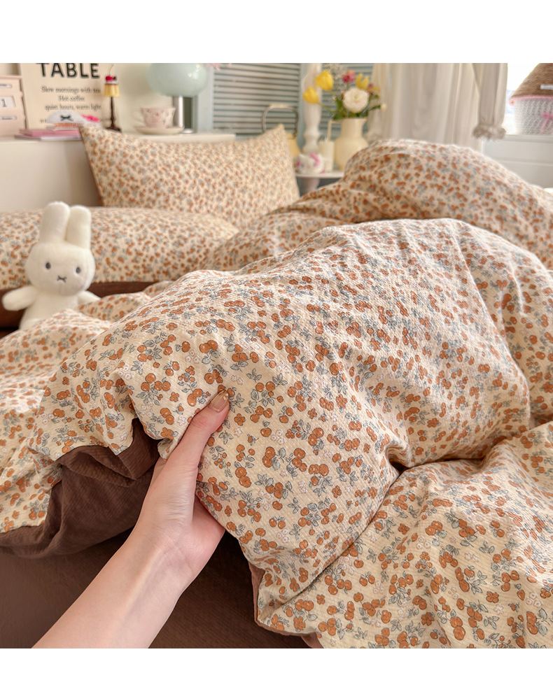 当前位置: 91家纺网 > 商品网购 > 床品套件 > 四件套 > 双层纱四件套 > 铺尚美家纺 2026新款小清新110g高品质直播热卖款A类泡芙棉双层纱四件套 伊柠