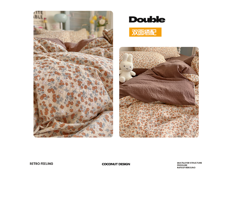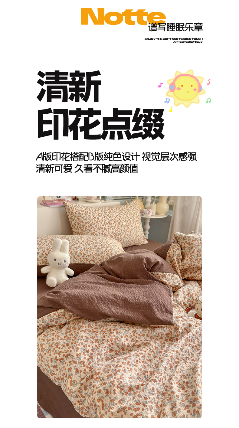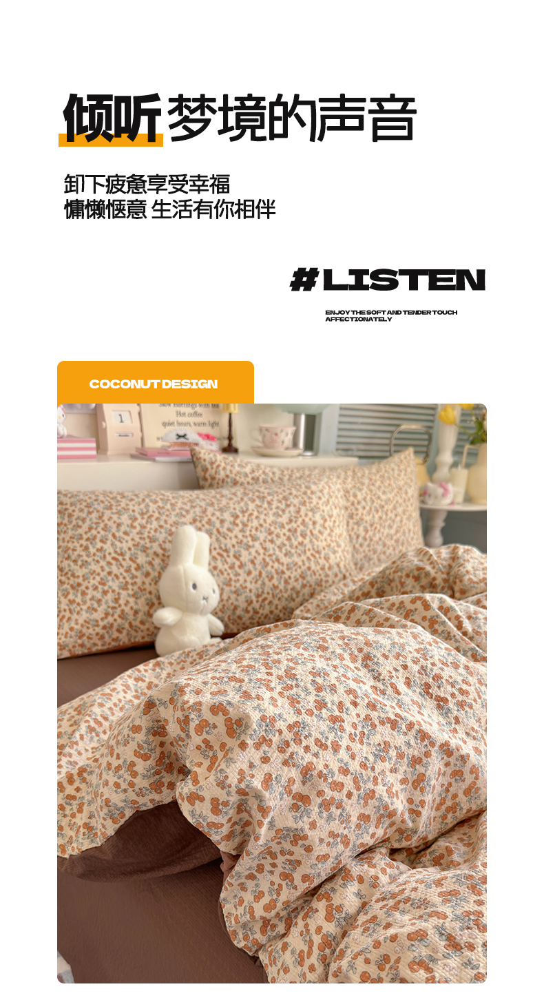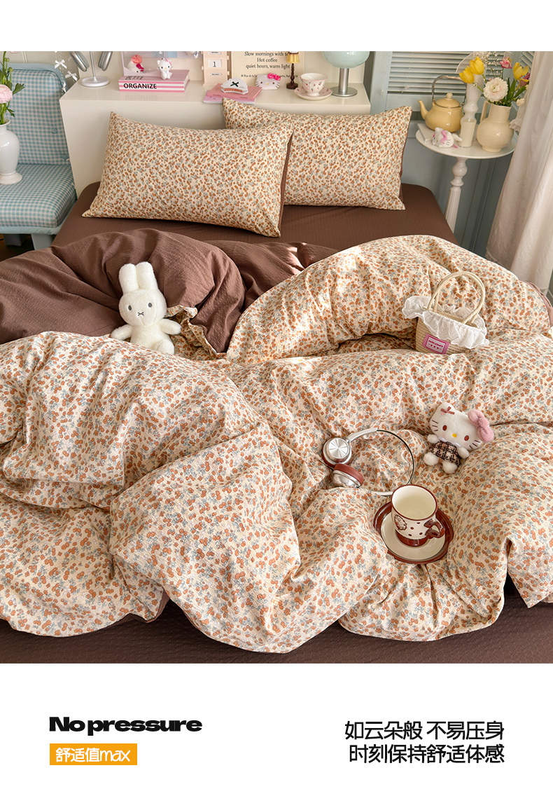当前位置: 91家纺网 > 商品网购 > 床品套件 > 四件套 > 双层纱四件套 > 铺尚美家纺 2026新款小清新110g高品质直播热卖款A类泡芙棉双层纱四件套 伊柠