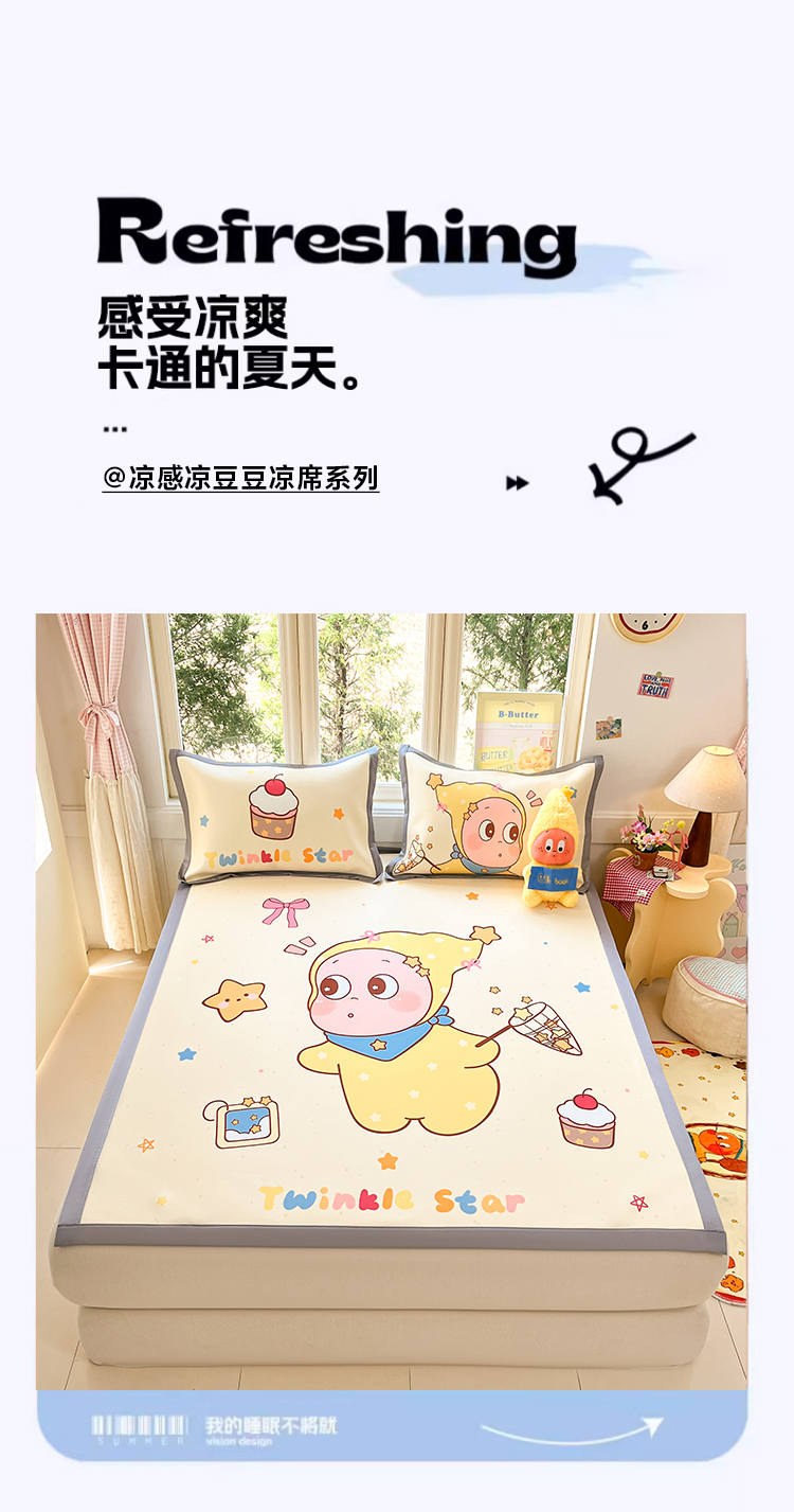 川悦生活 【提供买家秀】2026新款凉豆豆冰丝大阪卡通凉席 软甜奶糕
