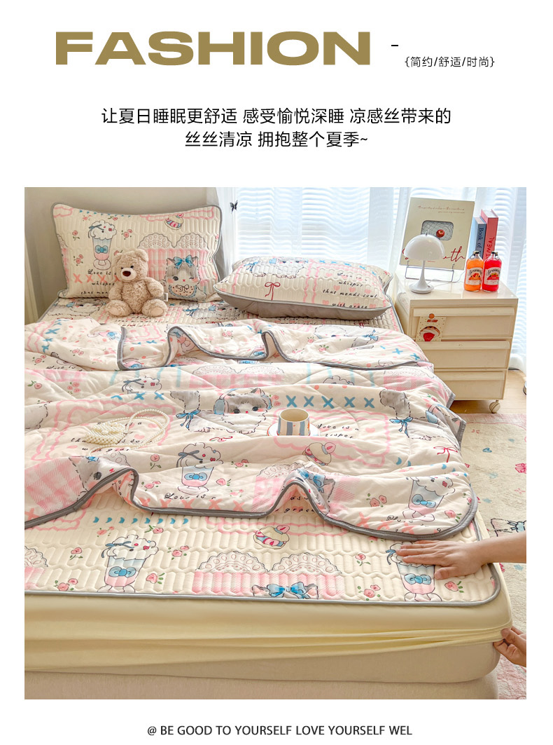(总)柒月家居 2025新款小清新乳胶凉席夏被套件,爱心草莓,字母小熊,爱心小熊,粉色猫咪,格调,好伙伴,花季,萌宠派对,碎花小猫,星星腊肠狗,星星月亮
