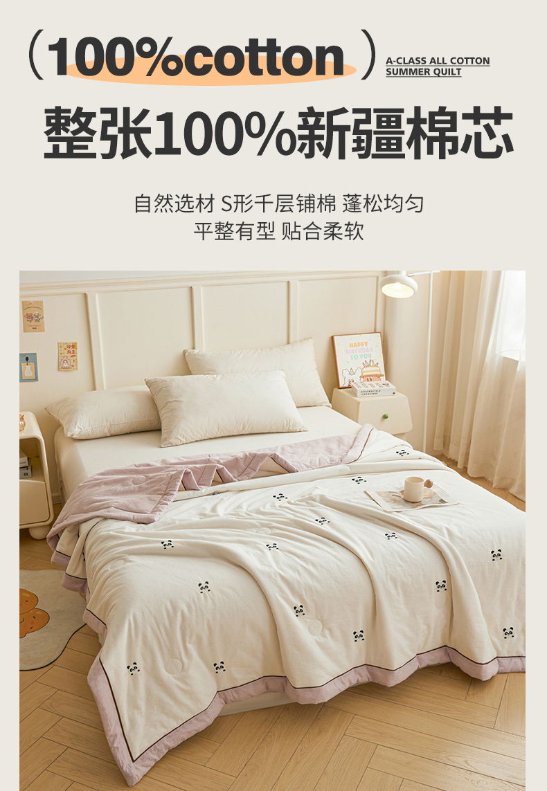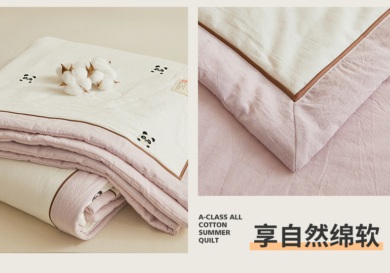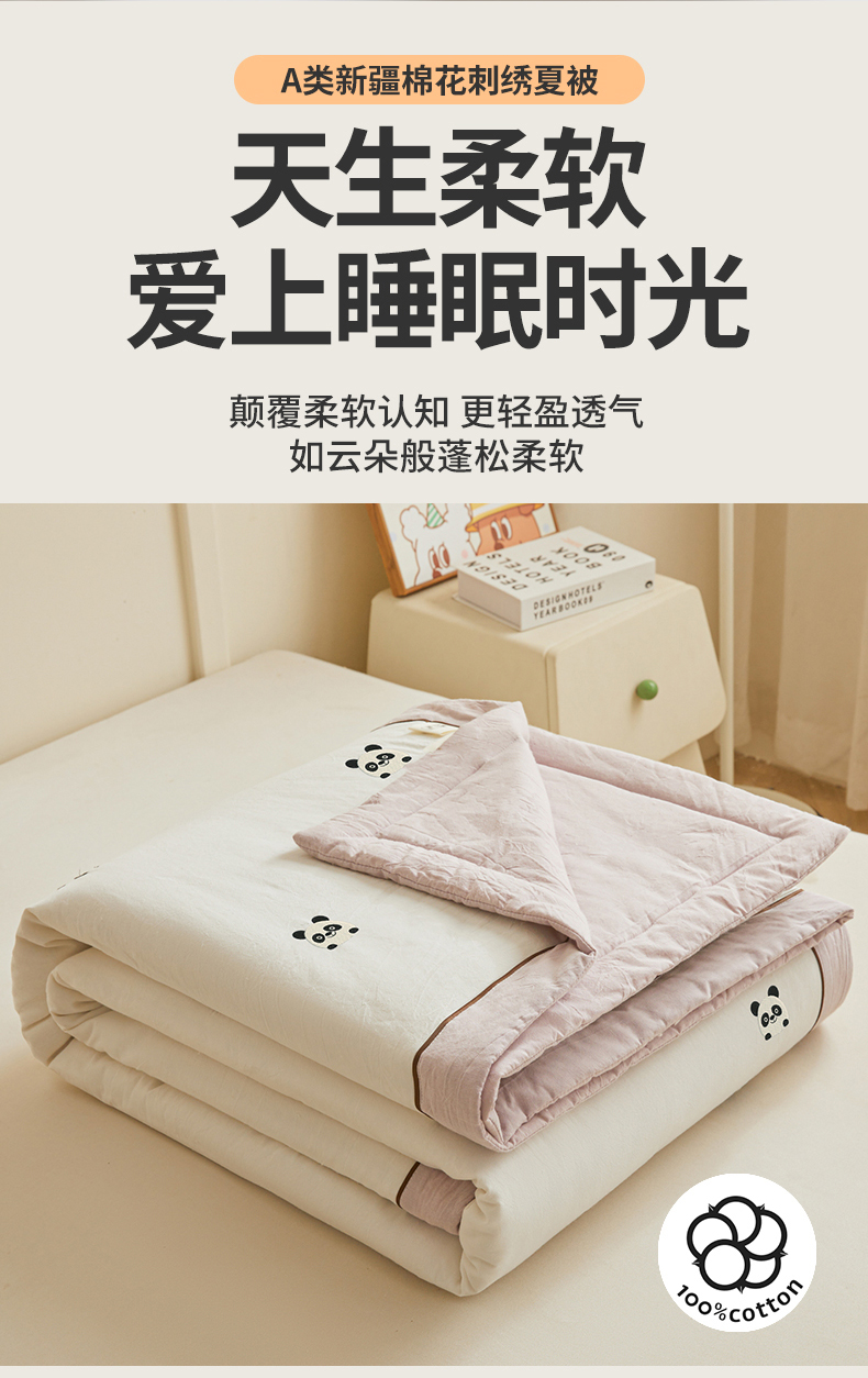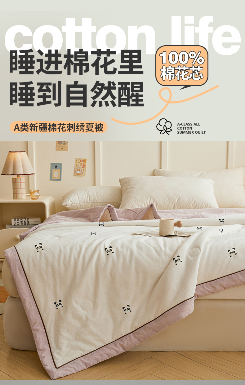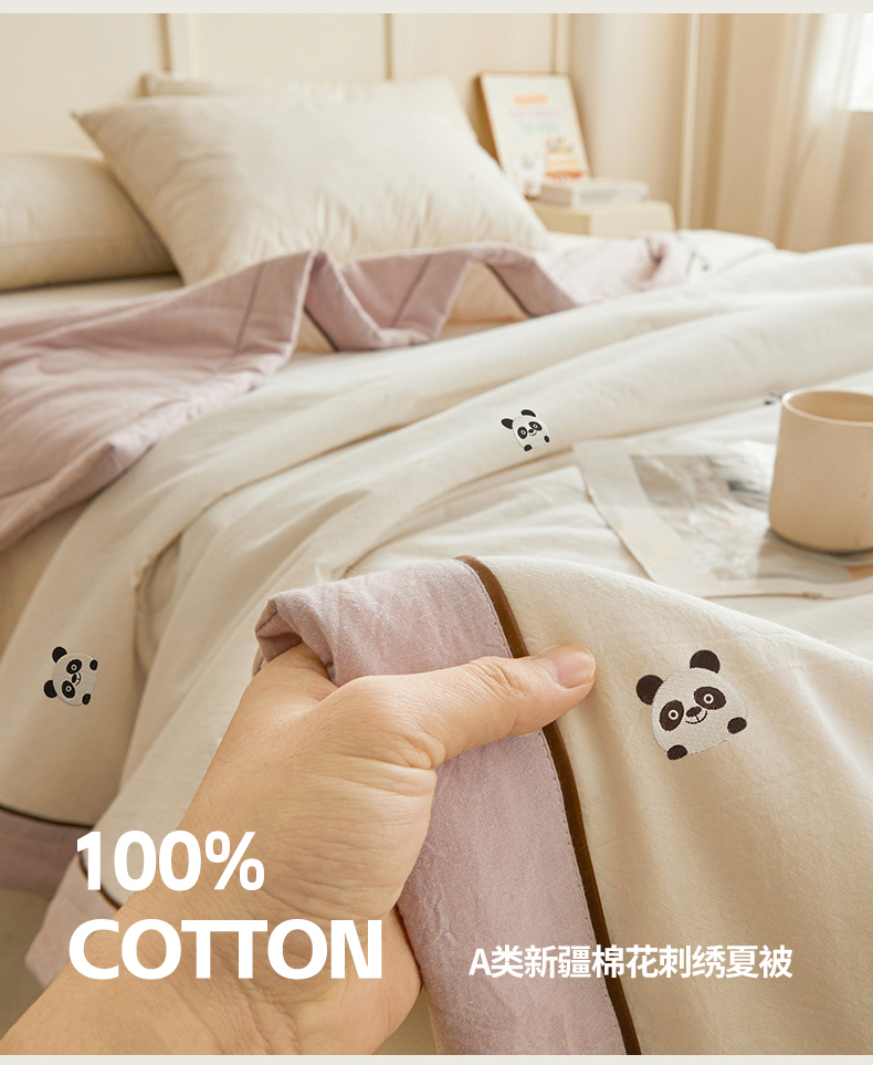 仁凯家纺 2026新款A类100%棉花刺绣款手包边夏被夏凉被空调被 熊猫-紫