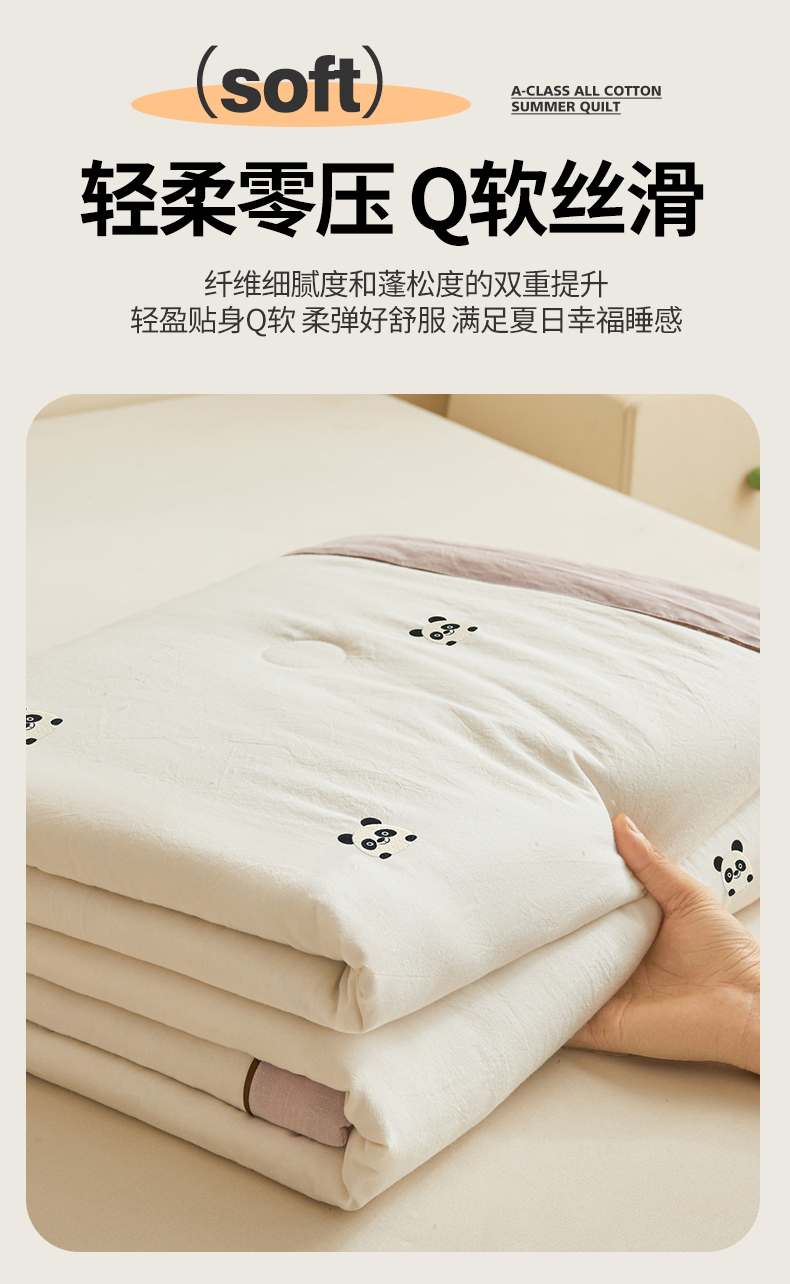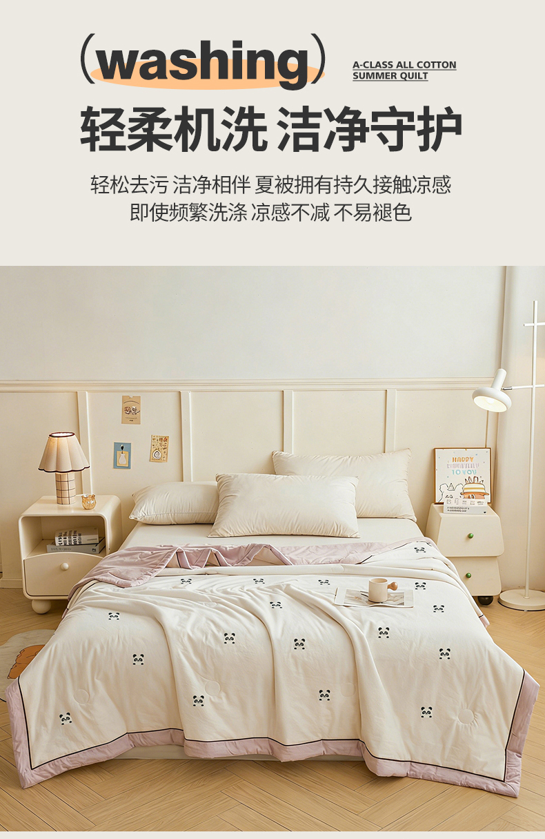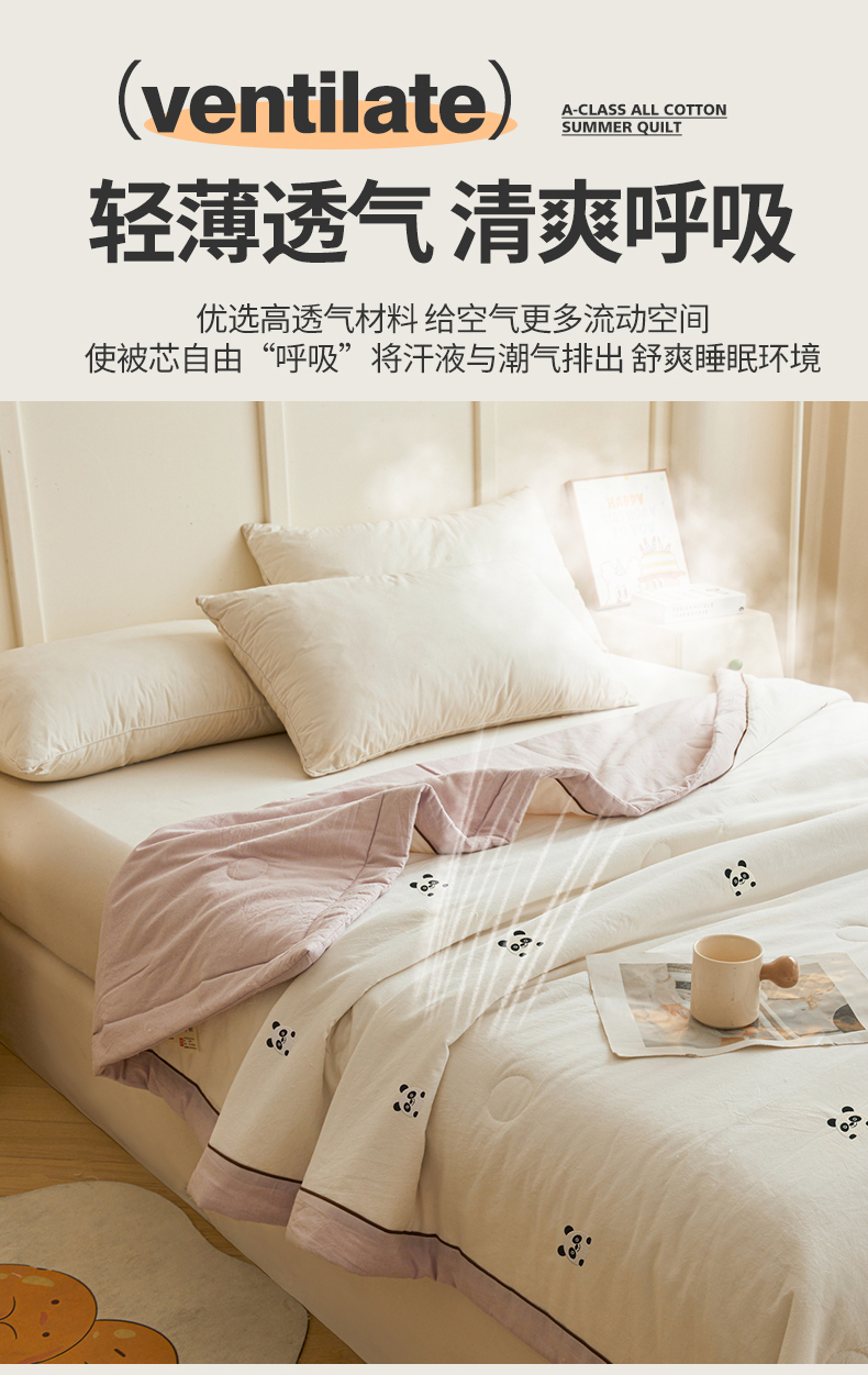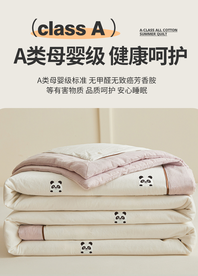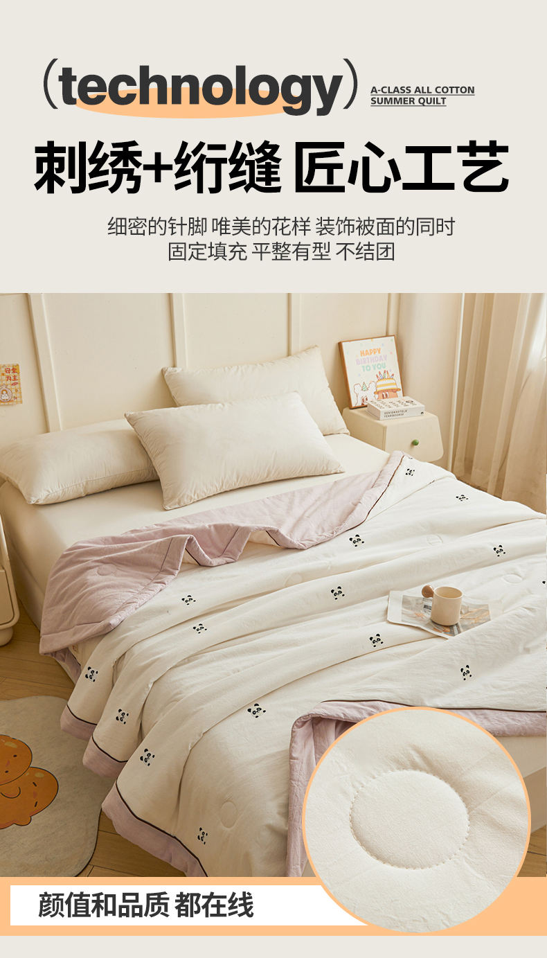 仁凯家纺 2026新款A类100%棉花刺绣款手包边夏被夏凉被空调被 熊猫-紫