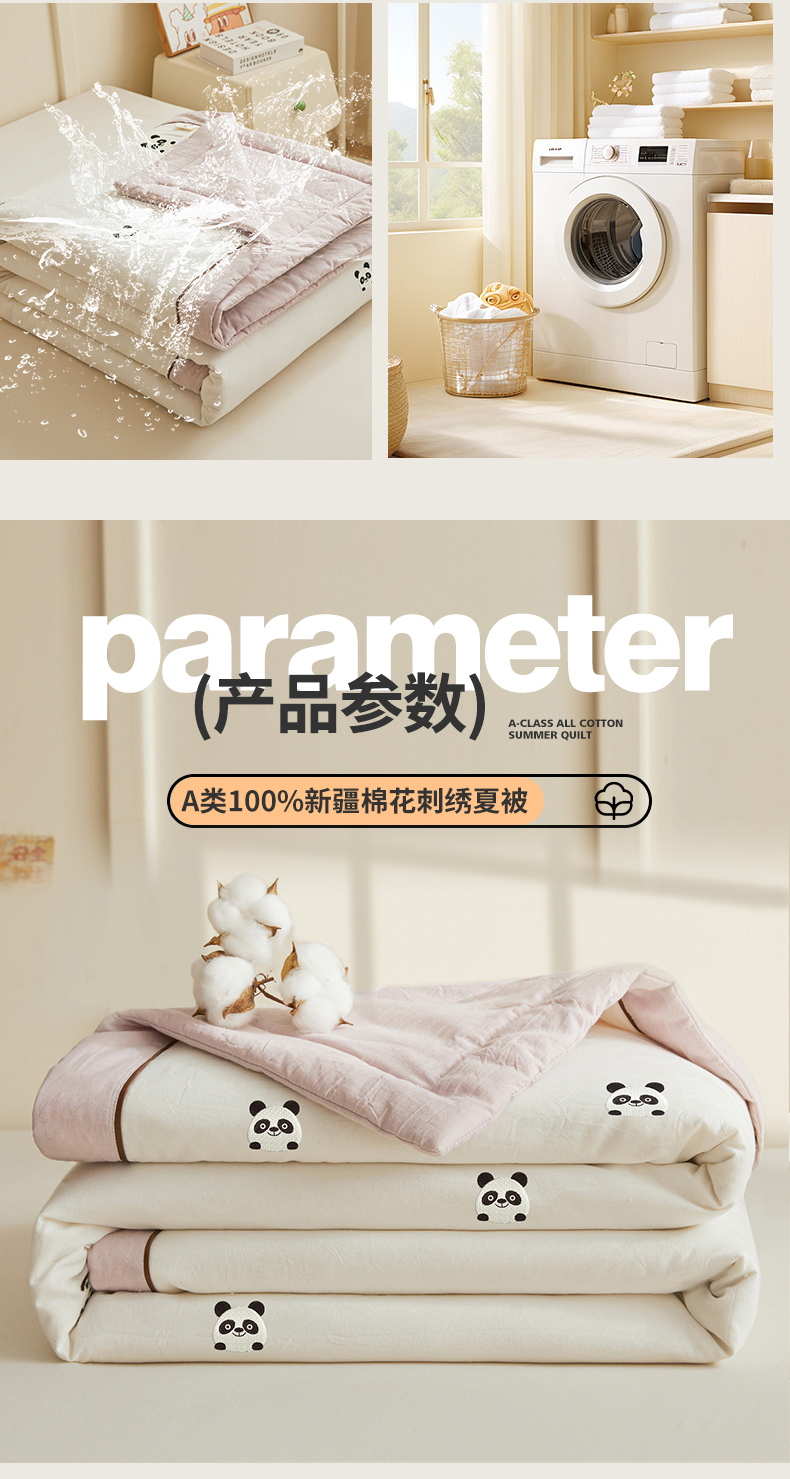 商品名称:仁凯家纺 2026新款A类100%棉花刺绣款手包边夏被夏凉被空调被 熊猫-紫